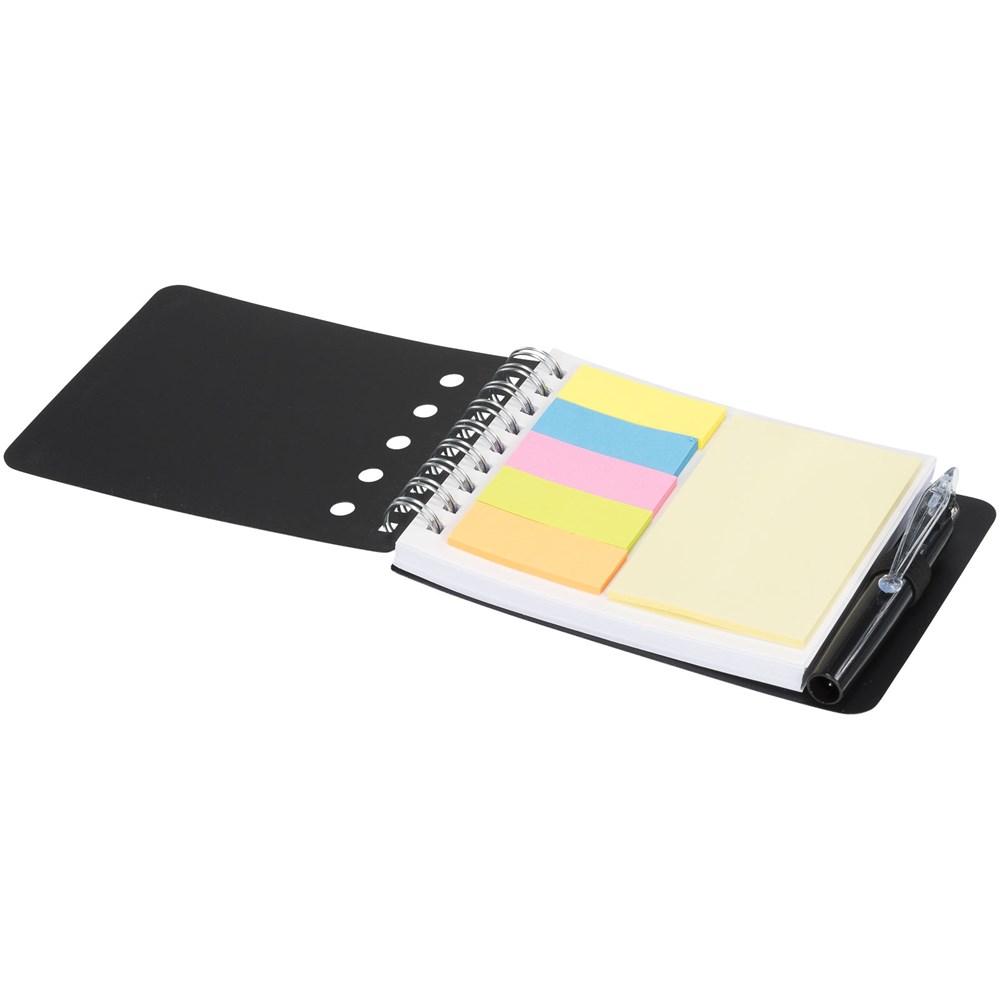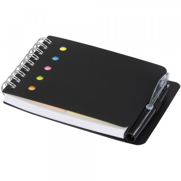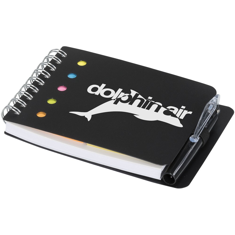 Das Kent Notizbuch wird sicher ein unerlässlicher Gegenstand für jeden Empfänger werden. Es enthält Schmierpapier-Blätter, selbstklebende Haftnotizen und Seitenmarkierungen in fünf kräftigen Farben. Es beinhaltet sogar einen kompakten Kugelschreiber in der Farbe des Polypropylen-Einbands.