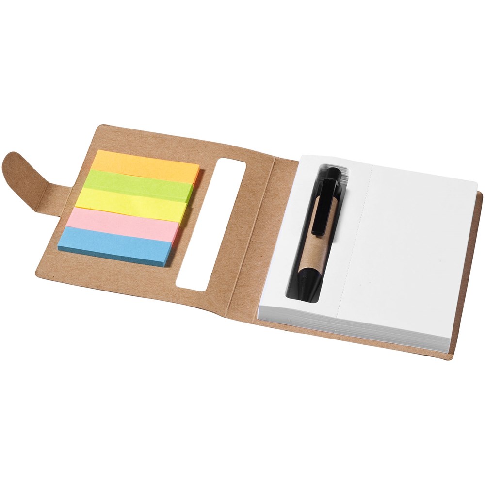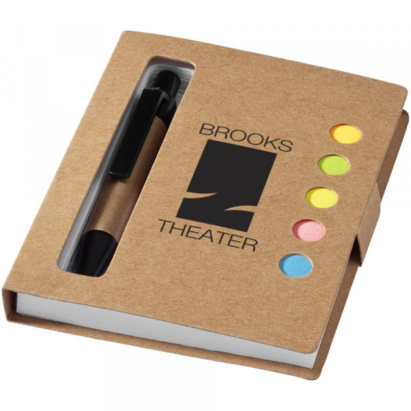 Notizblock mit 80 Blatt mit Kugelschreiber und mehrfarbigen Haftnotizen.