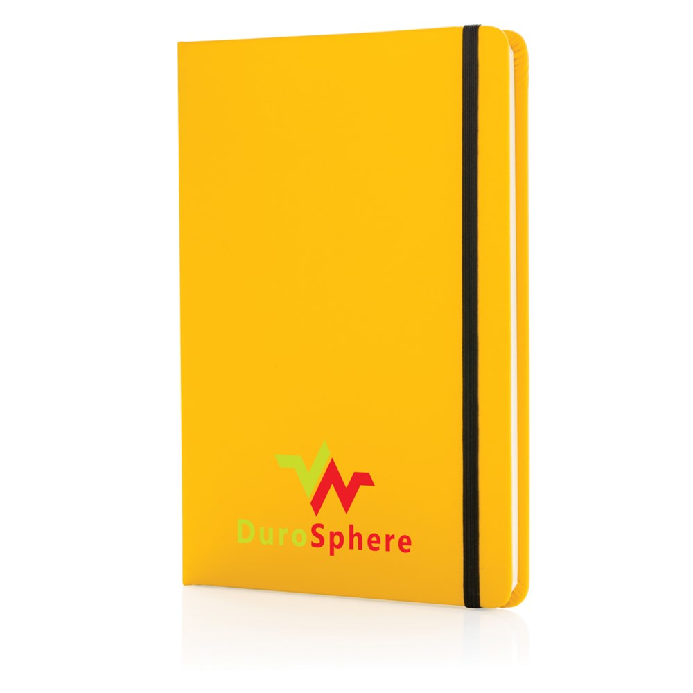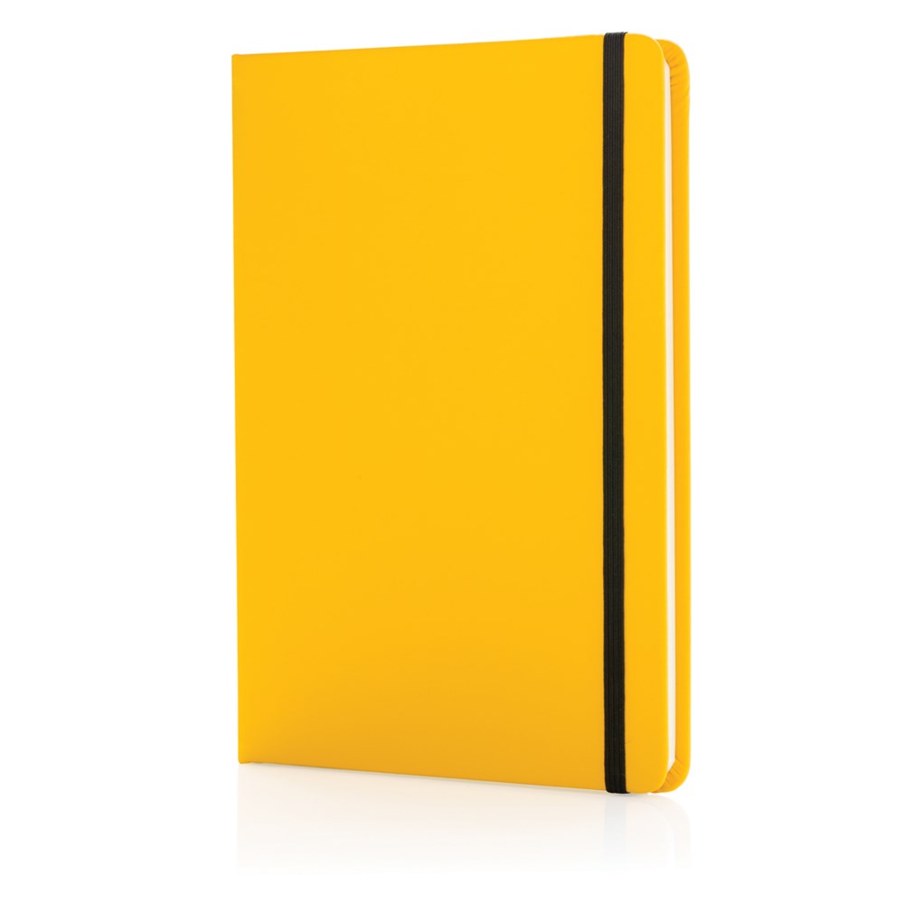 Klassisches, liniertes A5-Notizbuch mit PU-Hardcover, mit elastischem Verschluss und schwarzem Leseband. Mit 144 Seiten in einer Papierqualität von 70 g/m2. Seiten in cremefarbigem Papier.