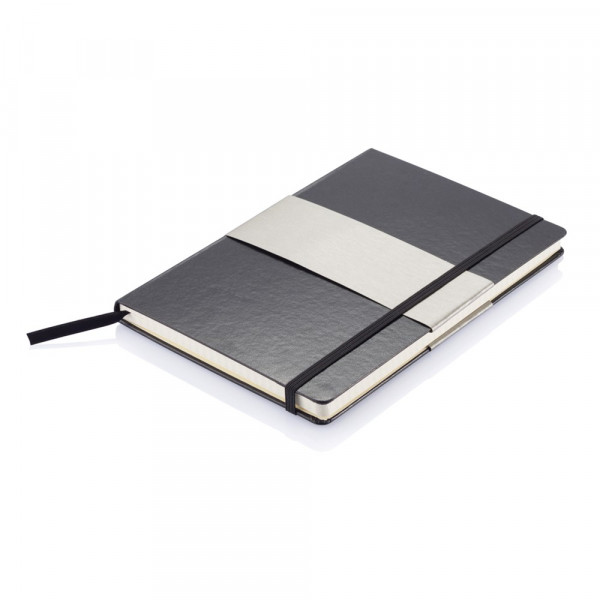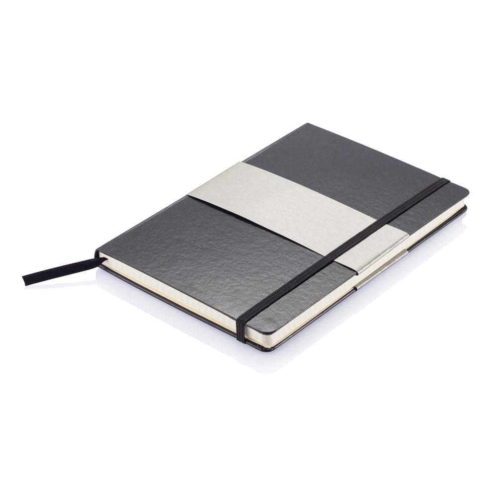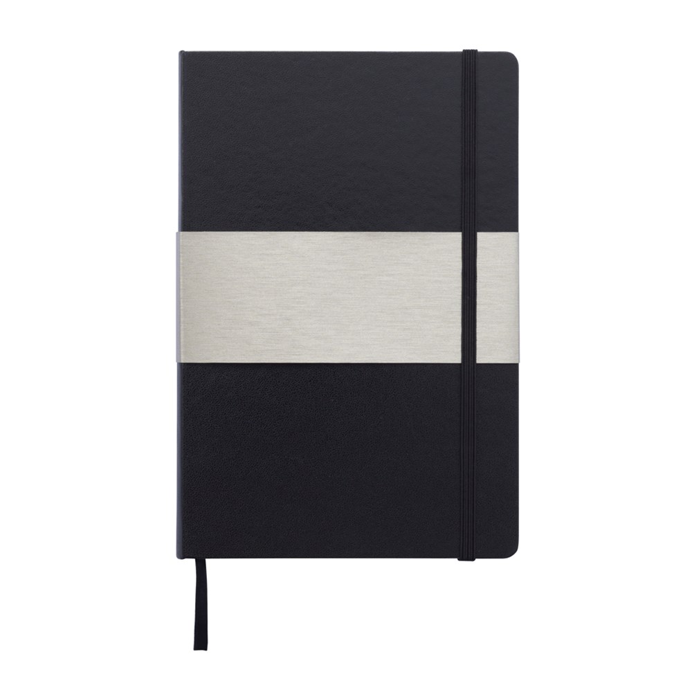 A5 Hardcover Notizbuch mit 80 Seiten von 80g/m Papier, Seitenteiler und Elastikband. Alle Seiten sind kariert (5x5 mm)