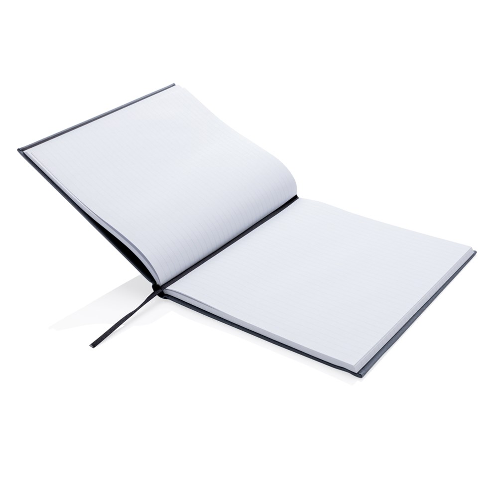Deluxe Notizbuch mit stoffbezogenem Cover. 96 Blätter / 192 Seiten weißes, liniertes Papier 80g/m2. Mit Seitentrenner.