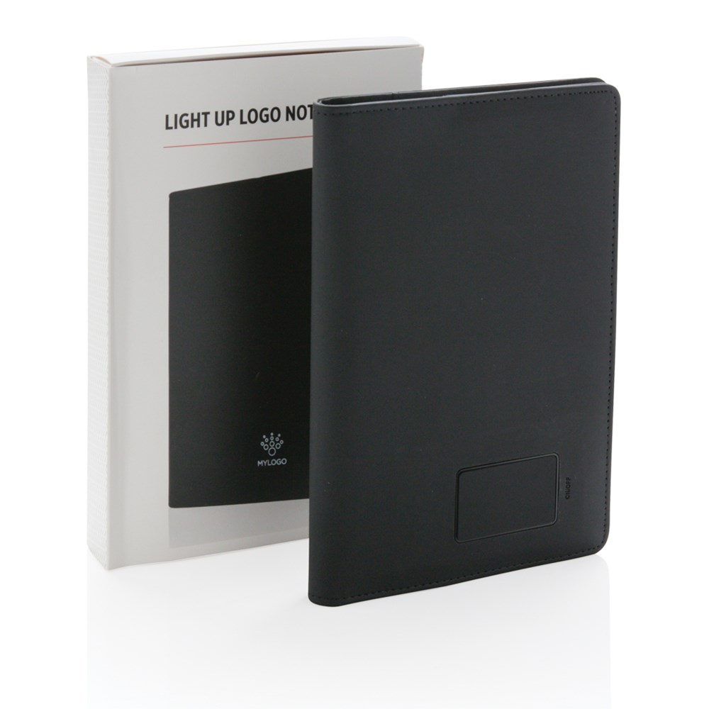 Dieses Notizbuch verfügt über ein Licht auf dem Cover, welches Ihnen ermöglicht Ihr Logo optimal zur Geltung zu bringen. Einzigartig und definitiv ein Eye-catcher! Inklusive 2 CR2032 Batterien und herausnehmbaren Notizbuch mit 128 Seiten, cremefarbenes, liniertes Papier 80g/m2.