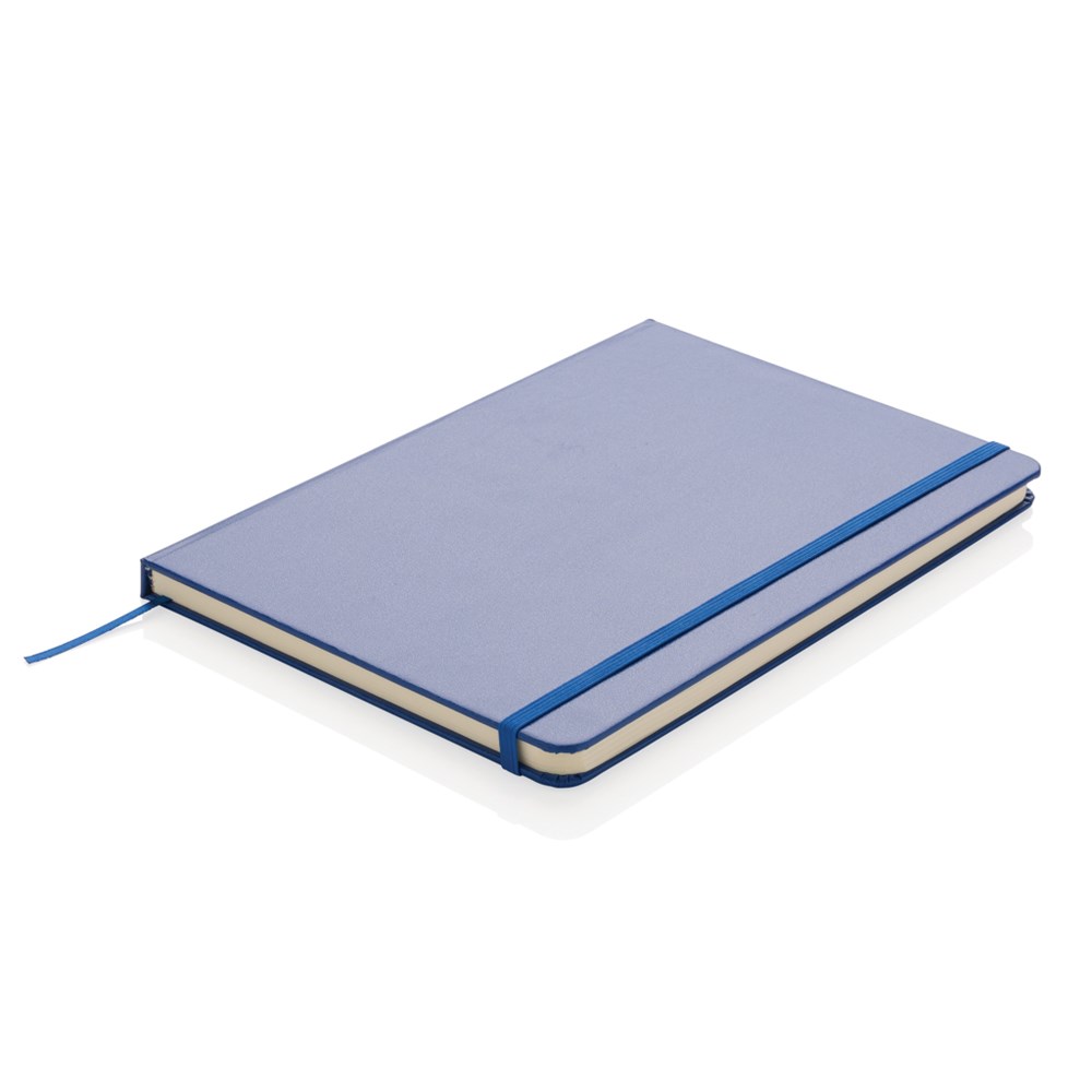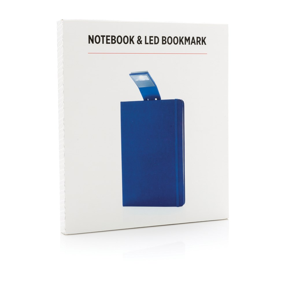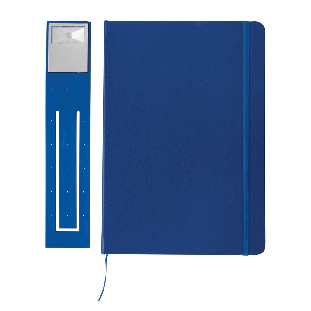 liniertes A5 Notizbuch mit Hardcover und LED Lesezeichen. 160 cremefarbene Seiten, 70gr/m².