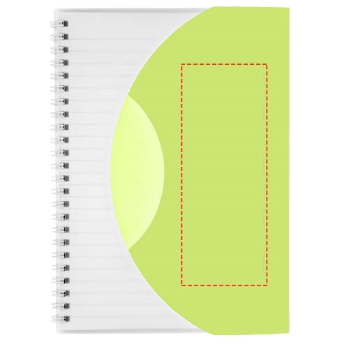 Curve A5 Spiralnotizbuch. Enthält 50 Blatt Blankopapier (80 g/m2) und einen farbigen Polypropylenumschlag von 500 Mikron. Die geschwungene Form verschließt das Notizbuch sicher. Eine Dekoration ist auf dem Umschlag sowie auf jedem Blatt möglich.