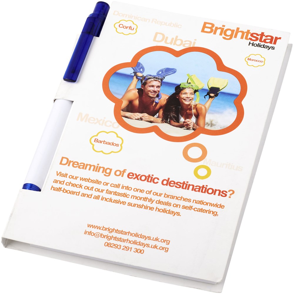 Essential Conference Pack A5. Enthält ein A5-Notizbuch mit 50 Blatt Blankopapier (80 g/m2) sowie einen Calypso-Stift am Buchrücken. Das Conference Pack ist mit einem Softcover (350 g/m2) ausgestattet. Vollfarbdruck auf beiden Seiten des Umschlags sowie auf jedem Blatt möglich.