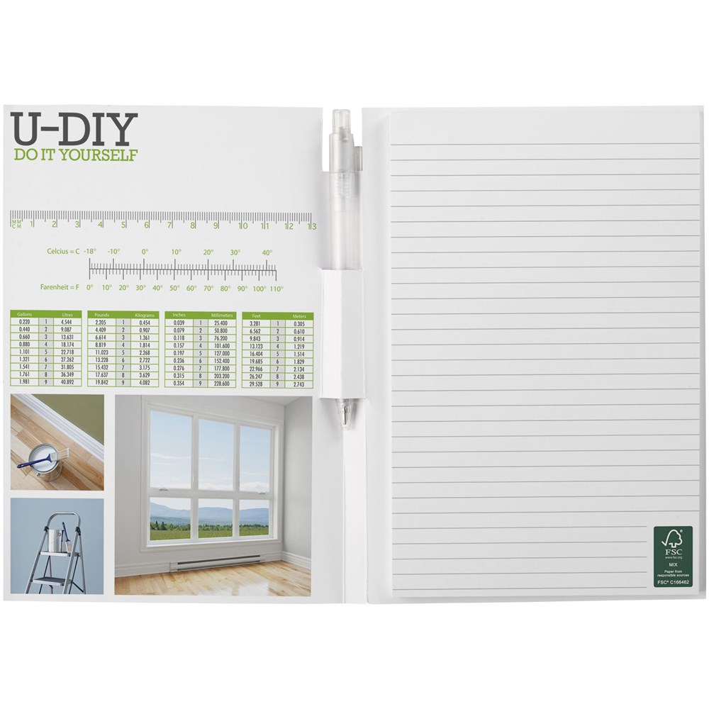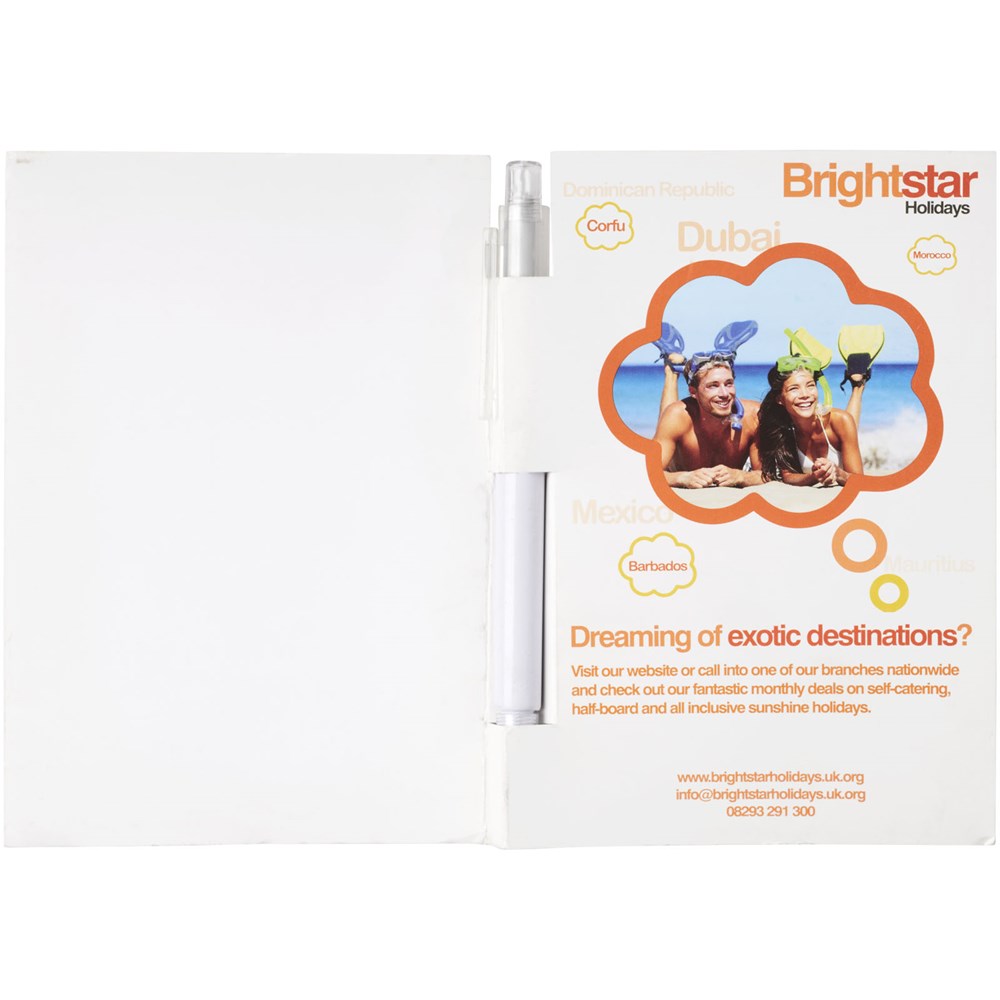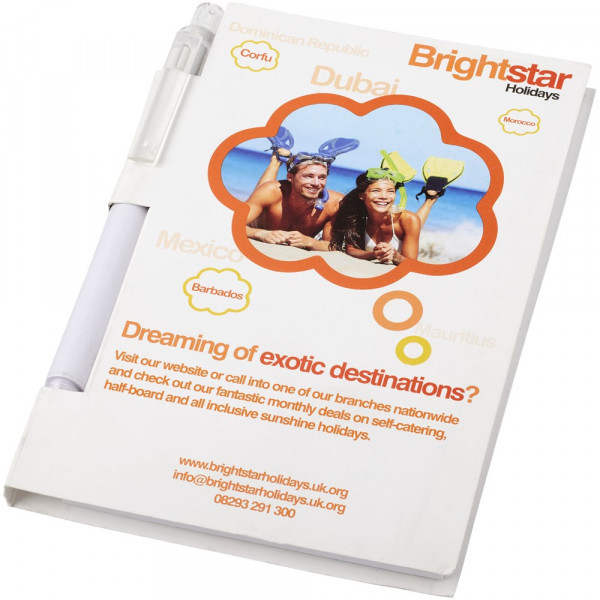 Essential Conference Pack A5. Enthält ein A5-Notizbuch mit 50 Blatt Blankopapier (80 g/m2) sowie einen Calypso-Stift am Buchrücken. Das Conference Pack ist mit einem Softcover (350 g/m2) ausgestattet. Vollfarbdruck auf beiden Seiten des Umschlags sowie auf jedem Blatt möglich.