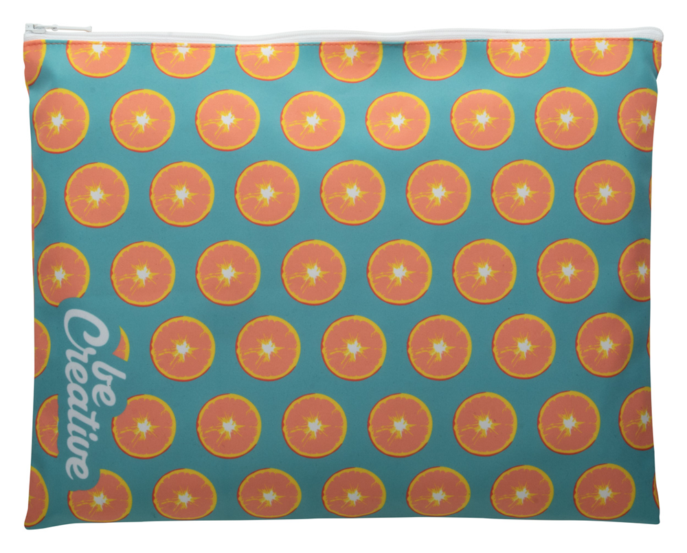 Individuelle Dokumentenmappe, mit Reißverschluss aus Polyester. Größe A4. Der Preis ist inkl. vollflächigem Sublimationsdruck. Mindestmenge: 50 Stk.