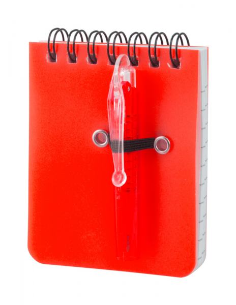 Spiral-Notizblock mit Kunststoff-Umschlag, 60 Seiten (liniert) und Kugelschreiber (blauschreibend).