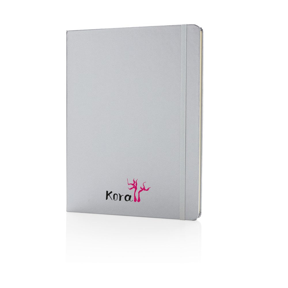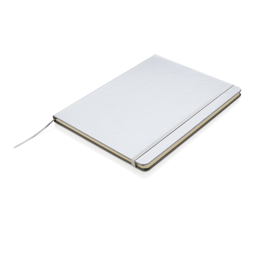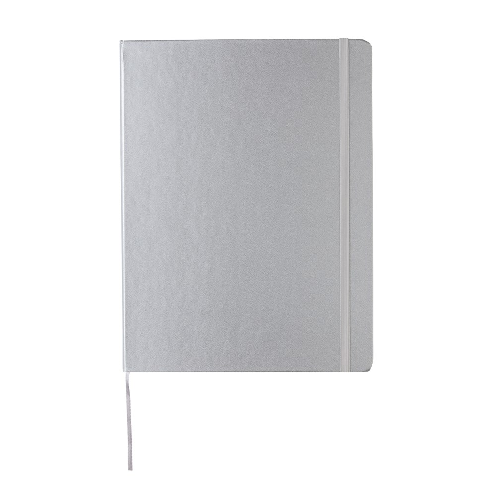 Liniertes Hardcover Notizbuch mit elastischem Verschlußband und Seitentrenner im B5 Format, 19x25cm. 144 cremefarbene Seiten, 70g/qm