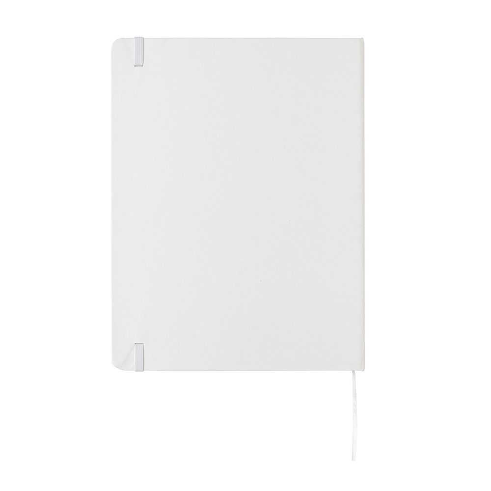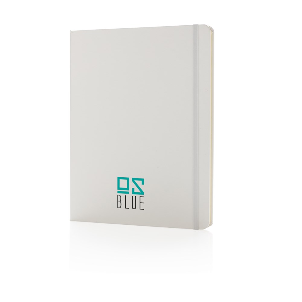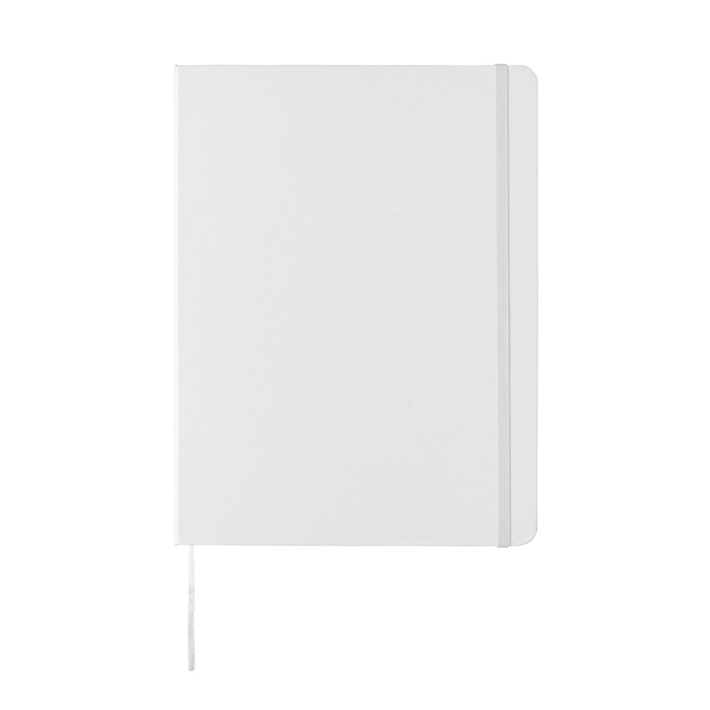 Liniertes Hardcover Notizbuch mit elastischem Verschlußband und Seitentrenner im B5 Format, 19x25cm. 144 cremefarbene Seiten, 70g/qm