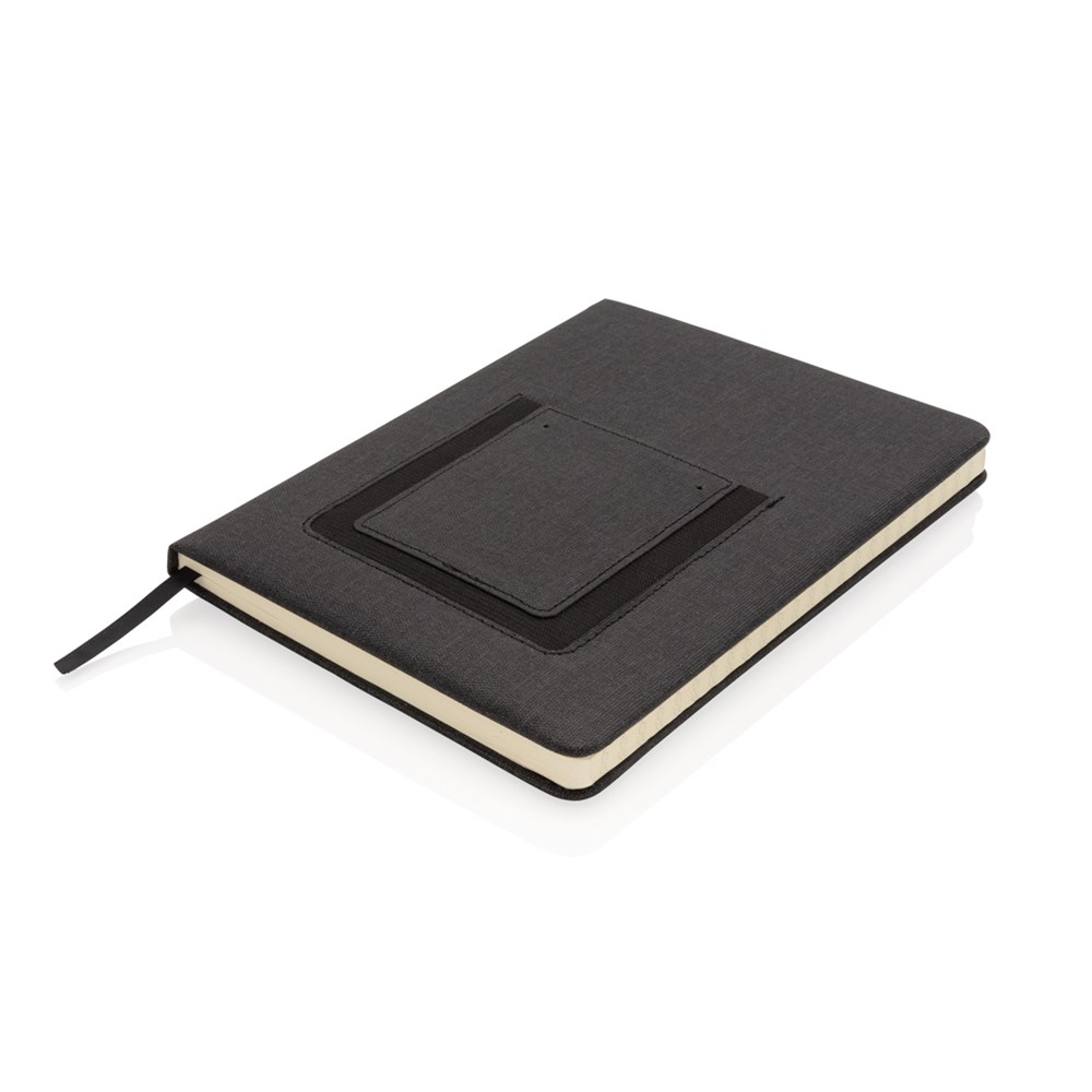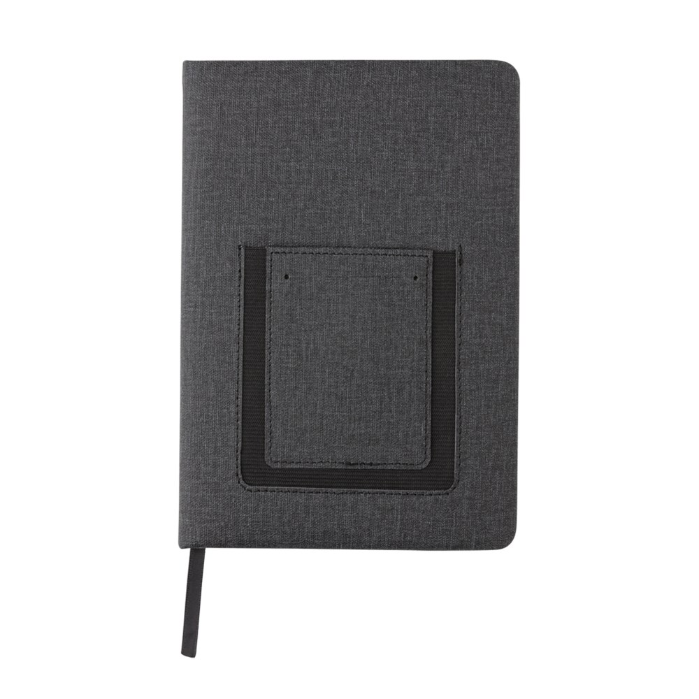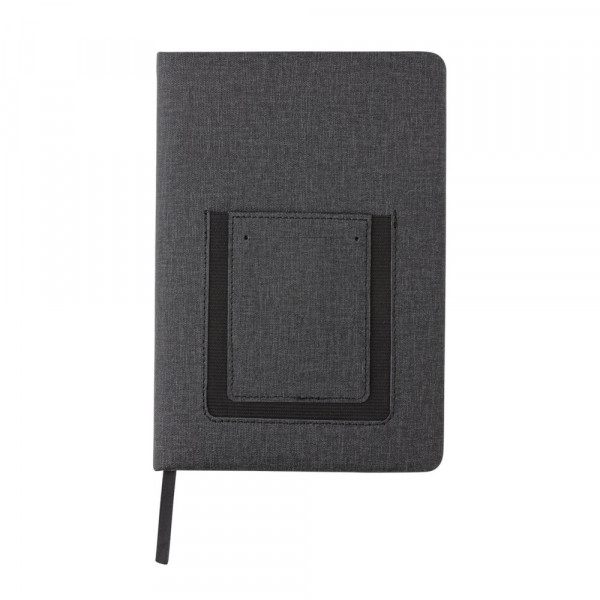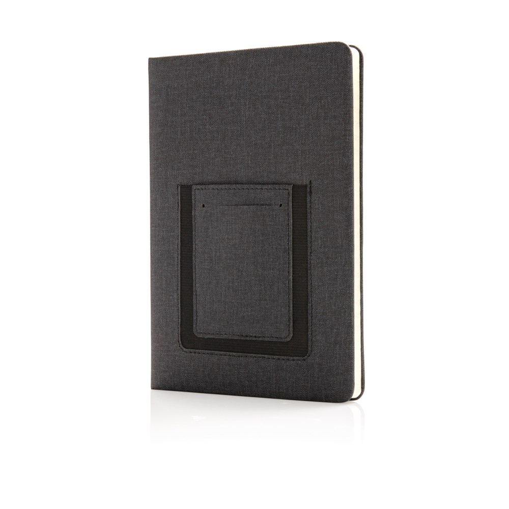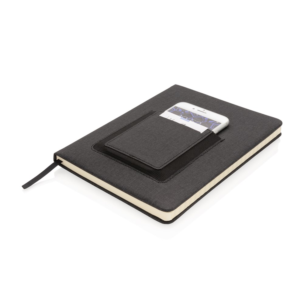 Deluxe A5 Notizbuch mit Telefontasche und Kartenfach. Mit 80 Blättern/ 160 cremefarbenen Seiten, 78g/m2. Mit Seitentrenner