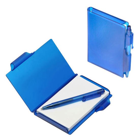 Notizbuch mit Druckkugelschreiber, blau-transparent