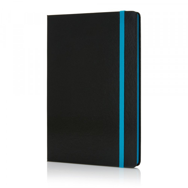 Modisches, gebundenes Notizbuch mit 80 Seiten von 80g/m² Papier. Die Seitenränder passen farblich zum Elastikband.