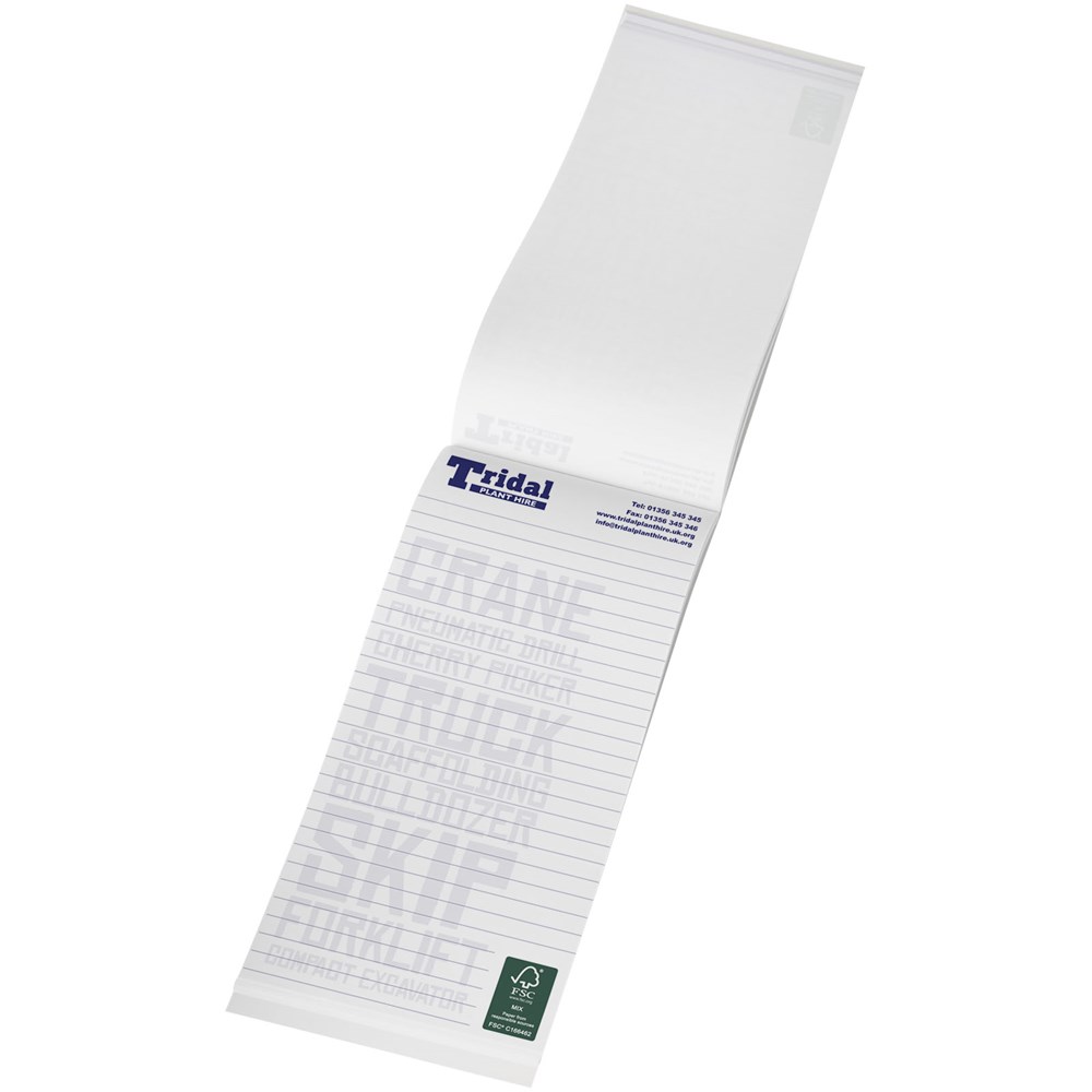 Weißer Desk-Mate® A4-Notizblock mit Umschlaghülle. Standardlieferung mit 50 Blatt 80g/m2-Papier mit einem 250 g/m2 Umschlag (21212002). Ebenfalls erhältlich in der Variante 25 Blatt (21212001). Vollfarbdruck auf dem Umschlag und jedem Blatt möglich.