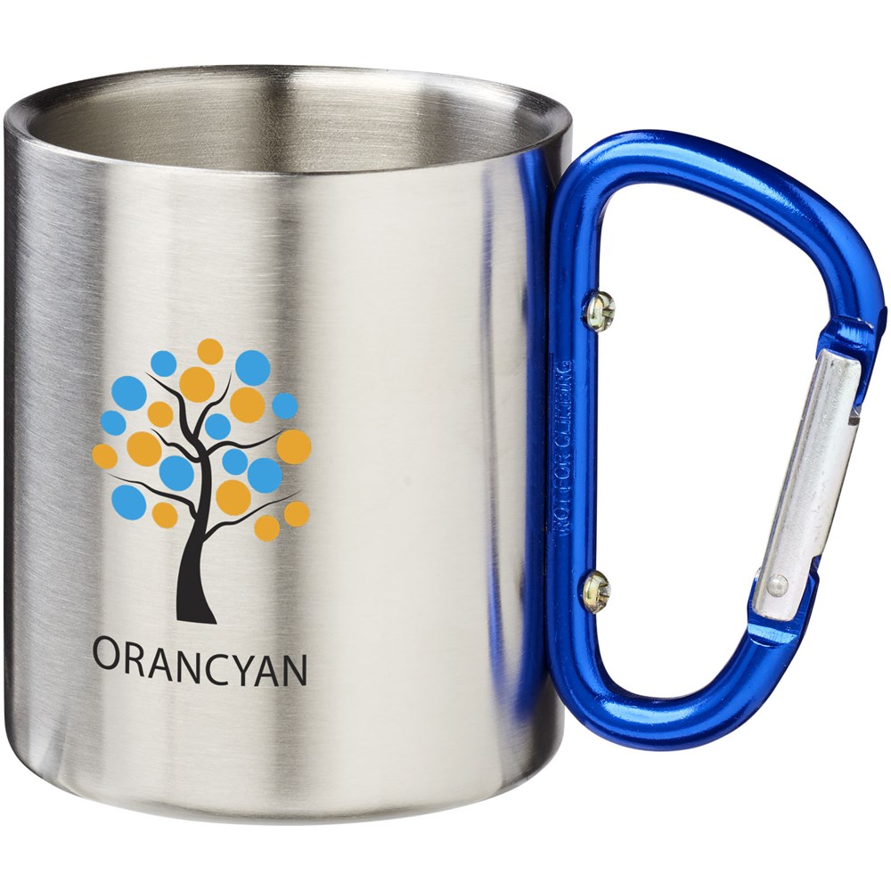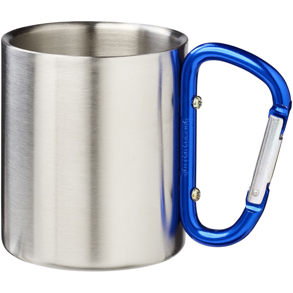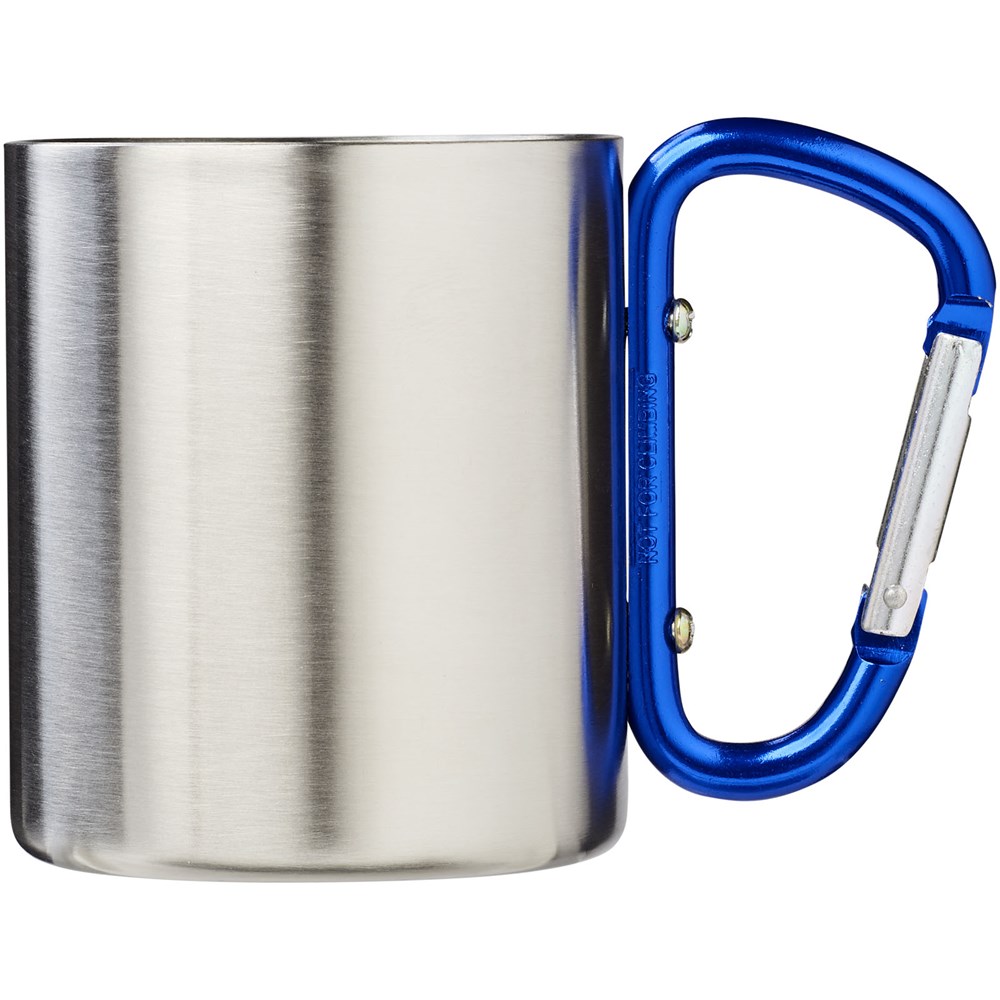 200 ml Becher mit breitem Griff aus Edelstahl, mit Karabiner im Griff. Ideal für Camping oder Outdoor Aktivitäten.