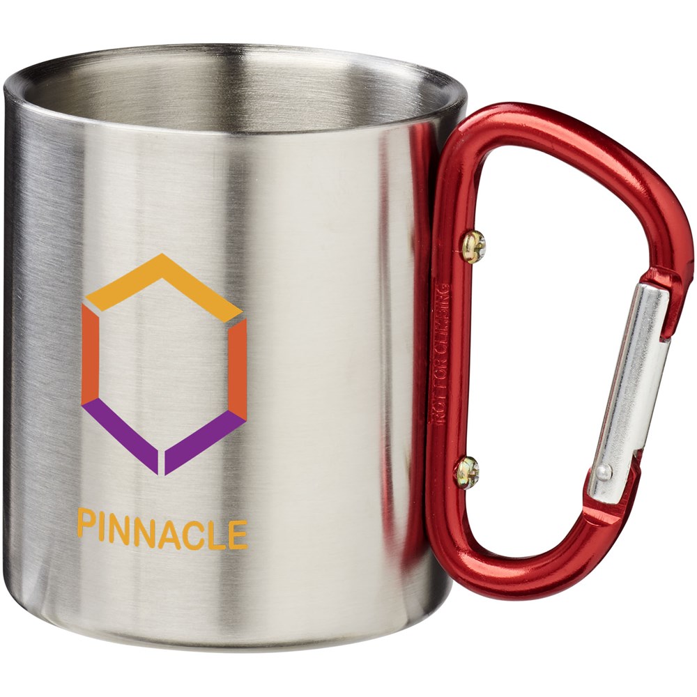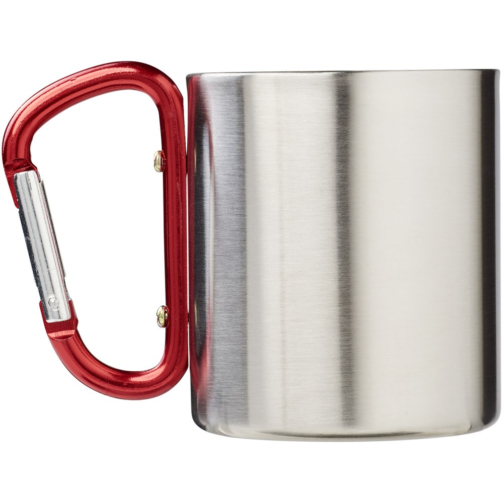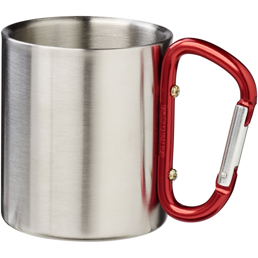 200 ml Becher mit breitem Griff aus Edelstahl, mit Karabiner im Griff. Ideal für Camping oder Outdoor Aktivitäten.