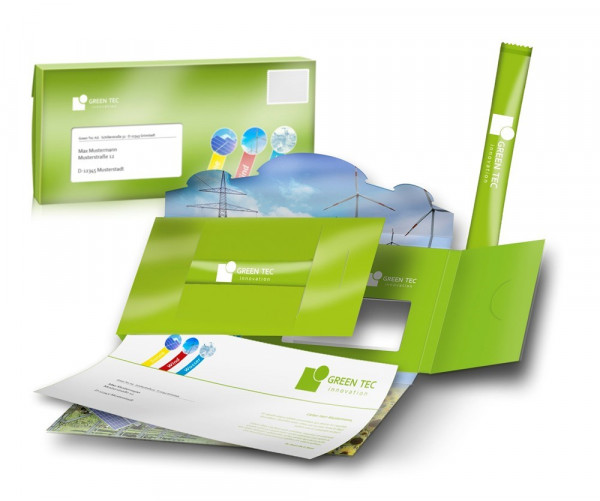 Personalisiertes, versandfertig konfektioniertes TeaMail Mailingsystem: Das fertige TeaMail wird zum optimalen Schutz in Folie eingeschrumpft. Faltbox (Kuvert): Druck auf Außen- und Innenseite: 4c (CMYK). Mit edler Matt-Cellophanierung auf der Außenseite. Einleger (personalisiert): Druck auf Vorder- und Rückseite: 4c (CMYK)|+ Adresseindruck & persönliche Anrede, schwarz auf Vorderseite.
