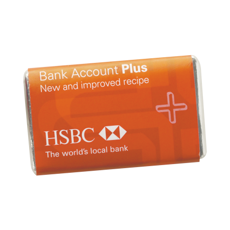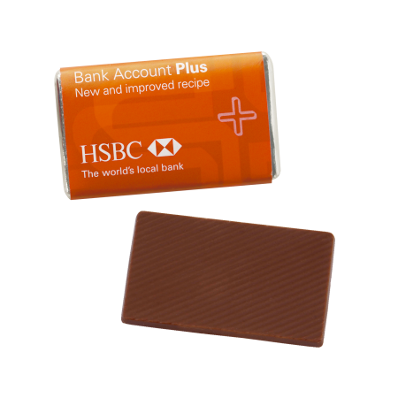 Schokotäfelchen 10,5 gr., aus Milchschokolade Barry Callebaut, mit 4c-Druck auf Wickel. Ein ganz persönliches Dankeschön !