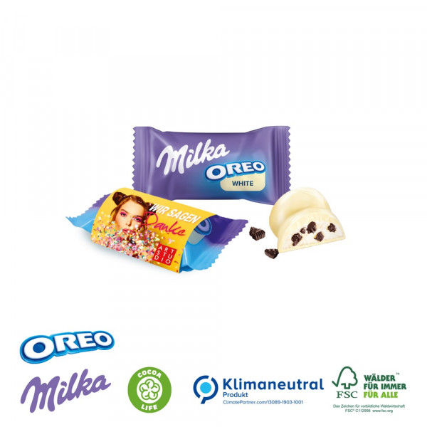 Besonderes Geschmackserlebnis! Die Milka OREO Minis bieten ein besonderes Geschmackserlebnis durch knusprige OREO-Keksstückchen in einer feinen Milchcreme, umhüllt von zarter Milka Alpenmilchschokolade. Nachhaltigkeit: Klimaneutrales Produkt. FSC®-zertifizierter Karton aus nachhaltiger Forstwirtschaft. Cocoa Life ist ein ganzheitliches Programm für nachhaltigen Kakao, mit dem letzendlichen Ziel den gesamten Kakaobedarf aus nachhaltigem Anbau zu beziehen (www.cocoalife.org)
