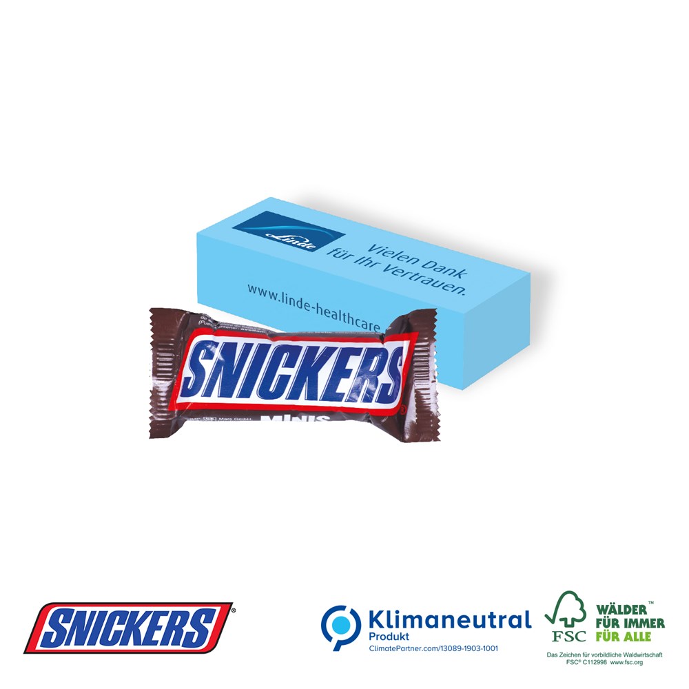 Der starke Schoko-Snack! Die leckeren Riegel genießen einen hohen Bekanntheitsgrad. Da greift jeder gerne zu! Die Verpackung bedrucken wir rundum individuell nach Ihren Vorlagen. Nachhaltigkeit: Klimaneutrales Produkt. FSC®-zertifizierter Karton aus nachhaltiger Forstwirtschaft