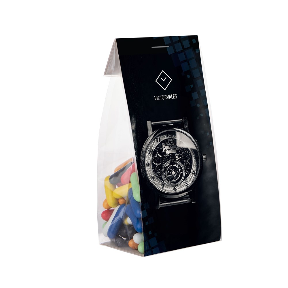 Für jeden sein eigenes! Unsere Standard-Blocktasche, aber mit einer bedruckten Karte in der Tasche und gefüllt mit 150 Gramm Süßigkeiten. Auswahl verschiedener Füllungen.