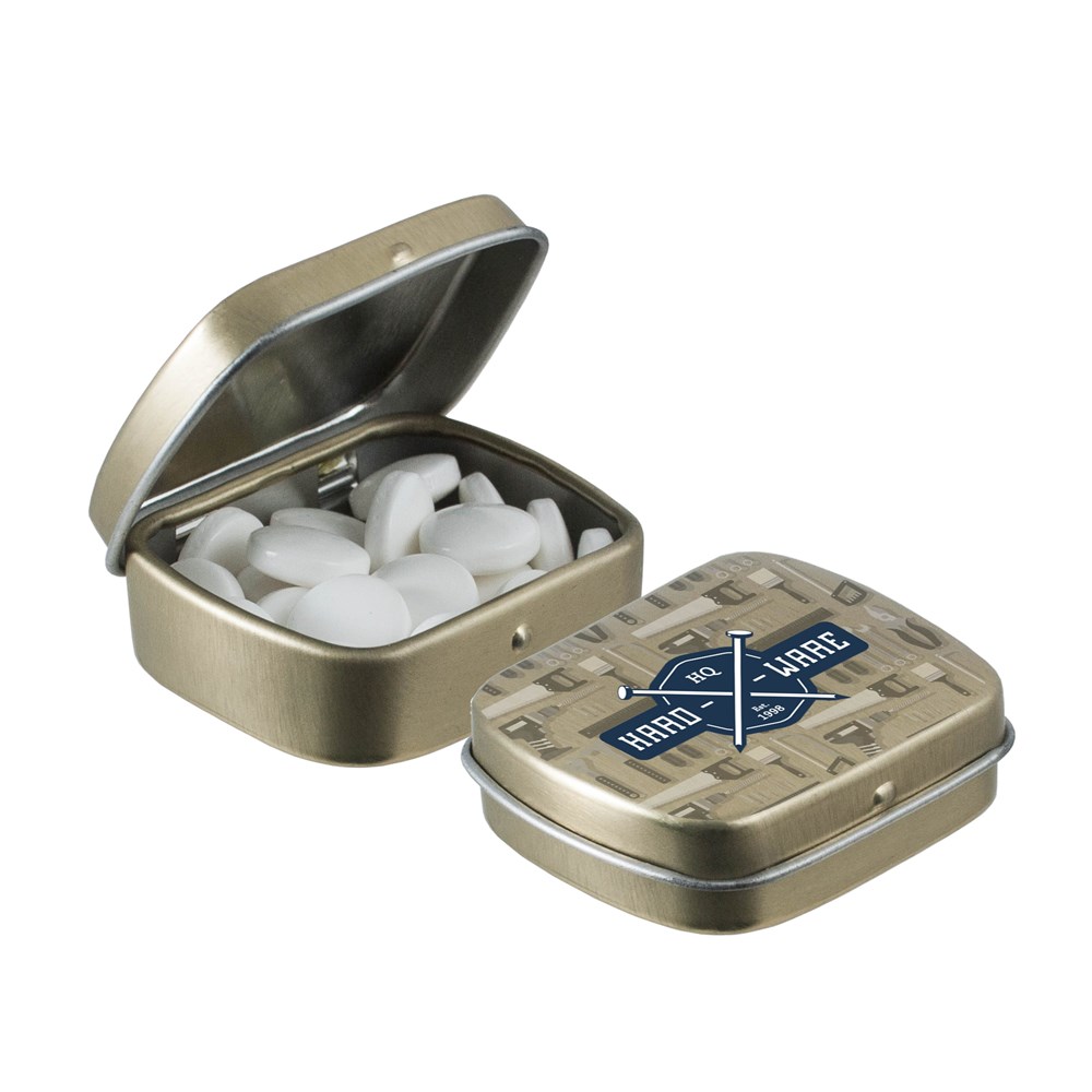 Unsere bekannte goldene Mikroscharnierdose ist mit frischer holländischer Pfefferminze gefüllt, einzeln versiegelt und mit einem ZutatenAufkleber versehen. In verschiedenen Farben erhältlich