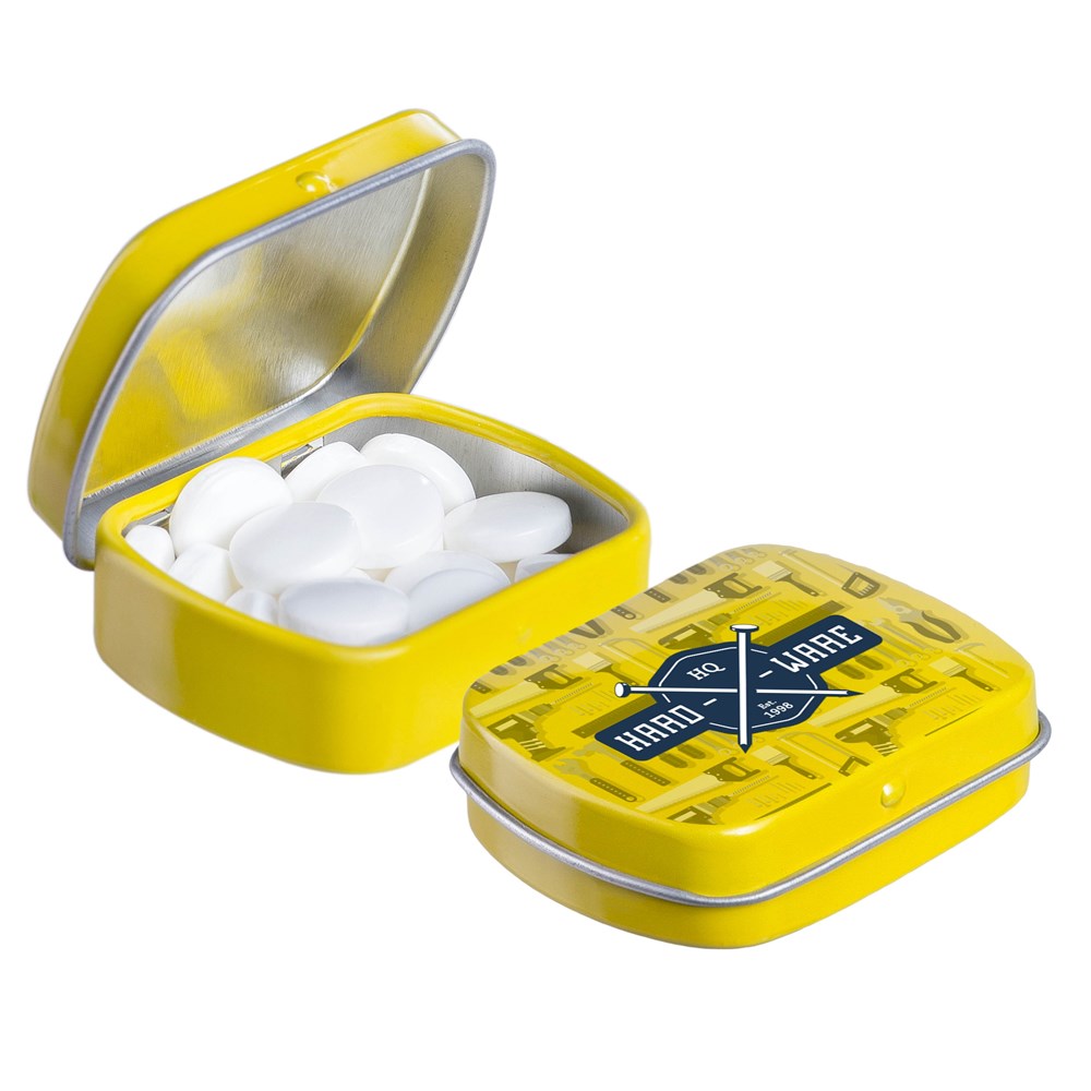Unsere bekannte gelbe Mikroscharnierdose ist mit frischer holländischer Pfefferminze gefüllt, einzeln versiegelt und mit einem ZutatenAufkleber versehen. In verschiedenen Farben erhältlich