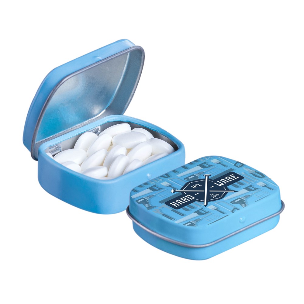 Unsere bekannte hell blaue Mikroscharnierdose ist mit frischer holländischer Pfefferminze gefüllt, einzeln versiegelt und mit einem ZutatenAufkleber versehen. In verschiedenen Farben erhältlich