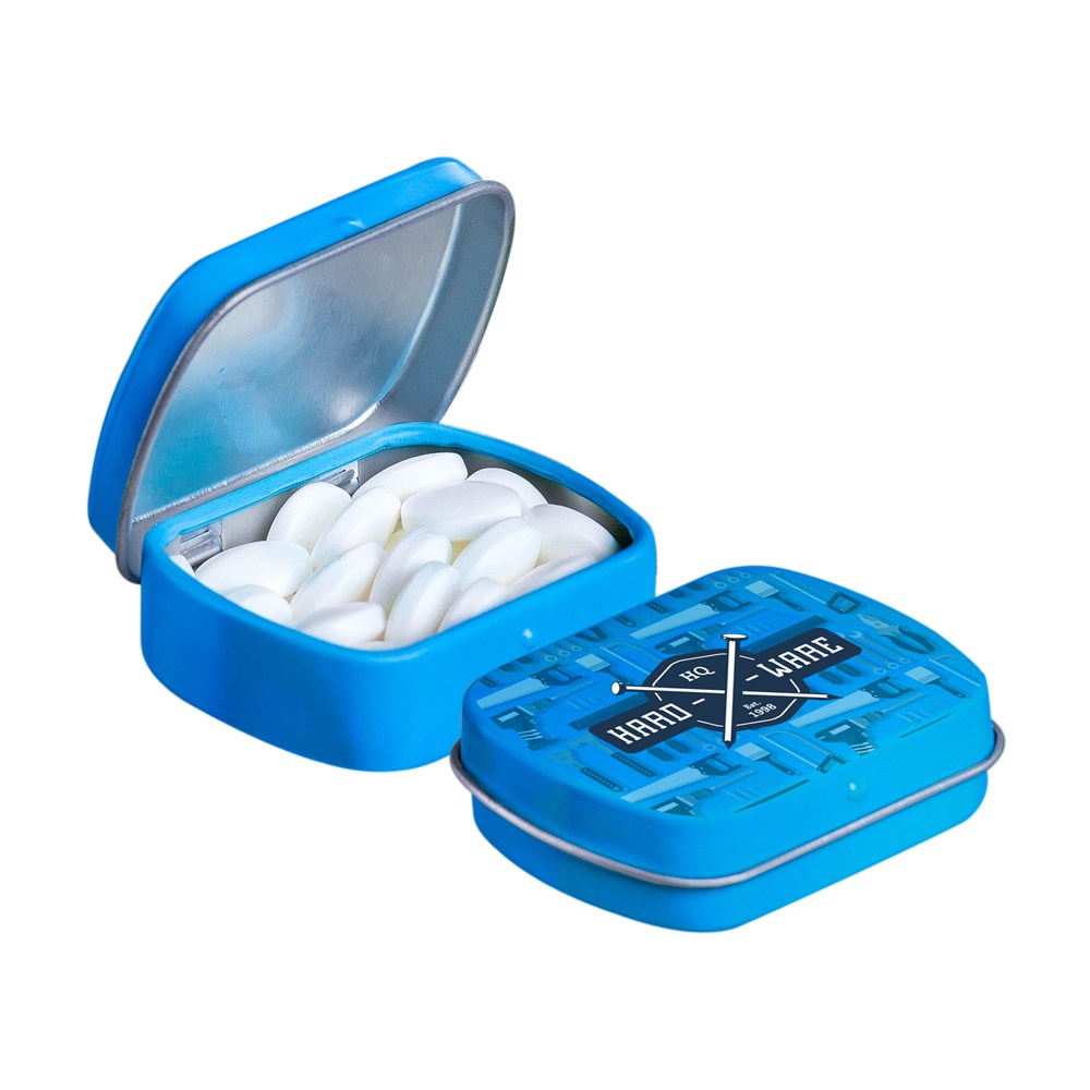 Unsere bekannte Kobalt blaue Mikroscharnierdose ist mit frischer holländischer Pfefferminze gefüllt, einzeln versiegelt und mit einem ZutatenAufkleber versehen. In verschiedenen Farben erhältlich