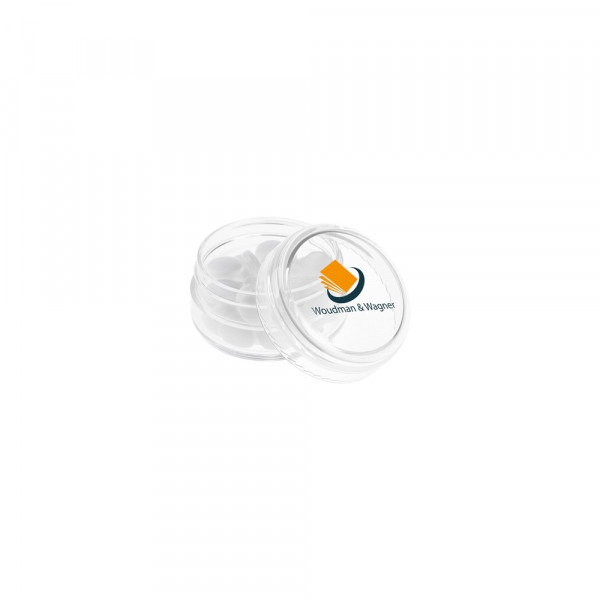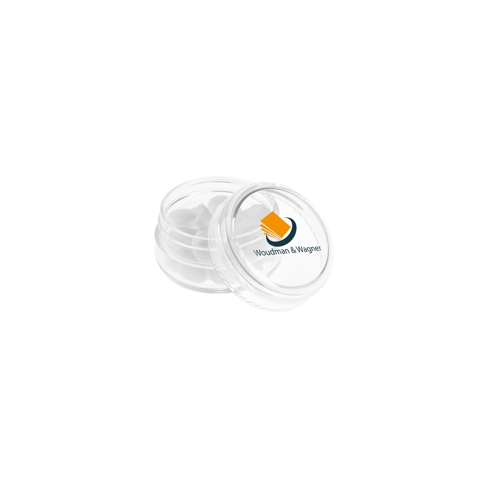 Transparenter Glas mit frischer holländischer Pfefferminze gefüllt und mit einem bedruckten Deckel versehen. Verschiedene Farben erhältlich.
