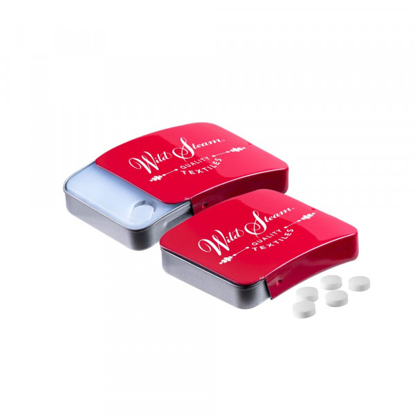 Eine überraschende Dose mit erfrischenden Mini Pfefferminzbonbons. Der Deckel ist in verschiedenen Farben erhältlich