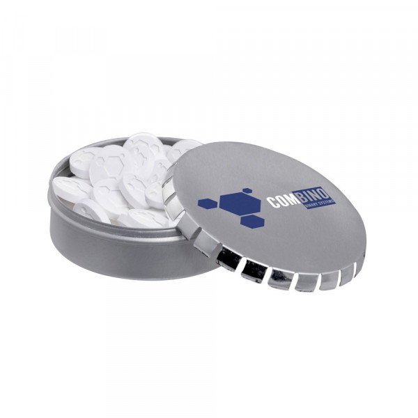 Benötigen Sie eine einzigartige Pfefferminze in Ihrer eigenen Form oder mit Ihrem Logo? Dann bestellen Sie unsere große silberne Clic-Dose, gefüllt mit frischer holländischer Pfefferminze, versiegelt pro Stück und mit einem ZutatenAufkleber versehen. Auch in weiß erhältlich.