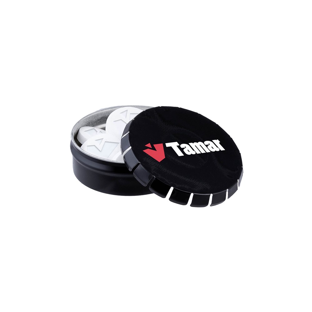 Benötigen Sie eine einzigartige Pfefferminze in Ihrer eigenen Form oder mit Ihrem Logo? Dann bestellen Sie unsere Cassische schwarze Mini-Clic-Clac-Dose, gefüllt mit frischer holländischer Pfefferminze, einzeln versiegelt und mit einem ZutatenAufkleber versehen. In verschiedenen Farben erhältlich.
