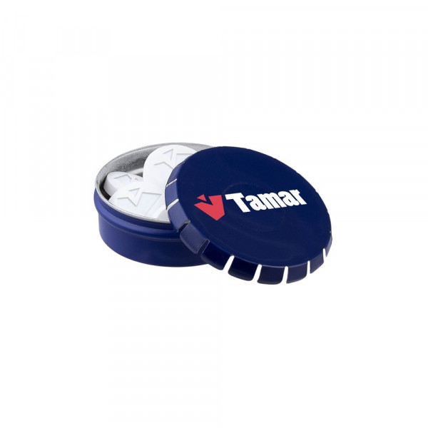 Benötigen Sie eine einzigartige Pfefferminze in Ihrer eigenen Form oder mit Ihrem Logo? Dann bestellen Sie unsere Cassische blaue Mini-Clic-Clac-Dose, gefüllt mit frischer holländischer Pfefferminze, einzeln versiegelt und mit einem ZutatenAufkleber versehen. In verschiedenen Farben erhältlich.
