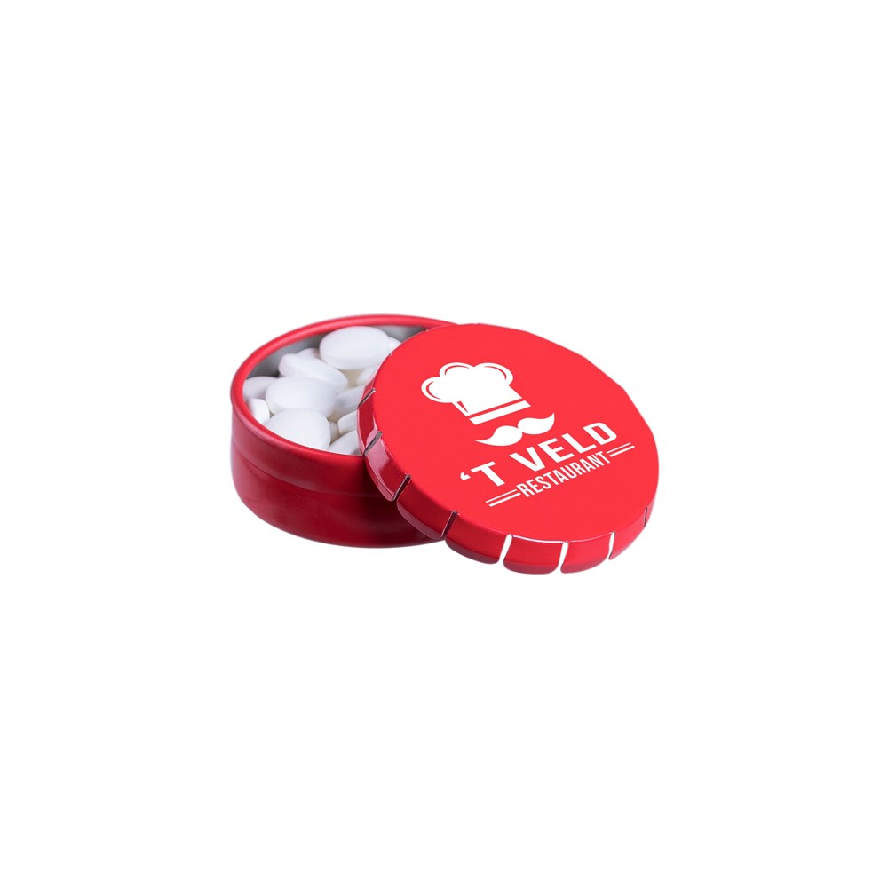 Die Cassische rote Super Mini Clic Clac Dose ist mit frischer holländischer Pfefferminze gefüllt, einzeln versiegelt und mit einem ZutatenAufkleber versehen. In verschiedenen Farben erhältlich.