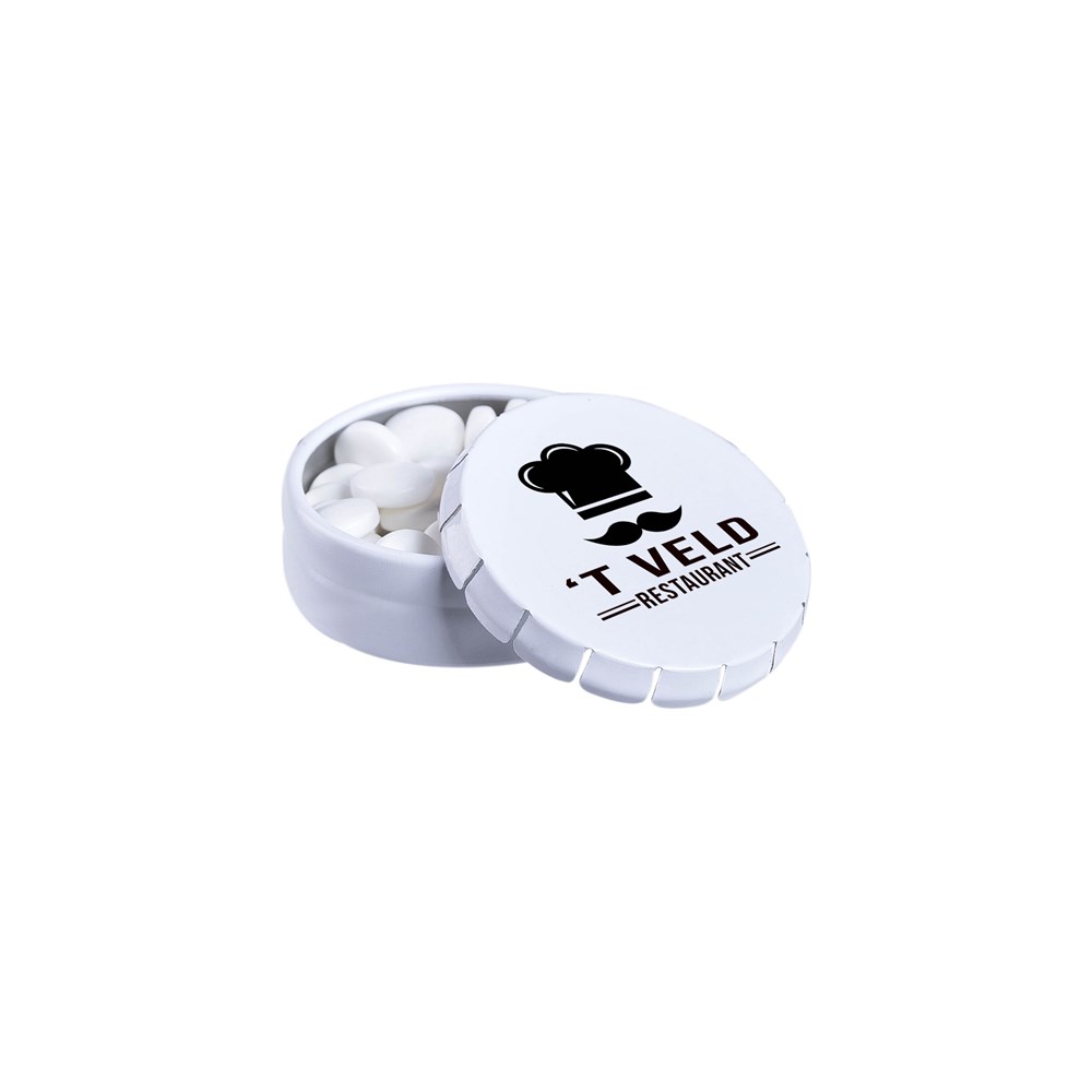 Het Cassieke fuchsiakleurige super mini clic clac blikje gevuld met frisse Nederlandse pepermunt, per stuk geseald en voorzien van een ingrediëntensticker. Leverbaar in diverse kleuren.