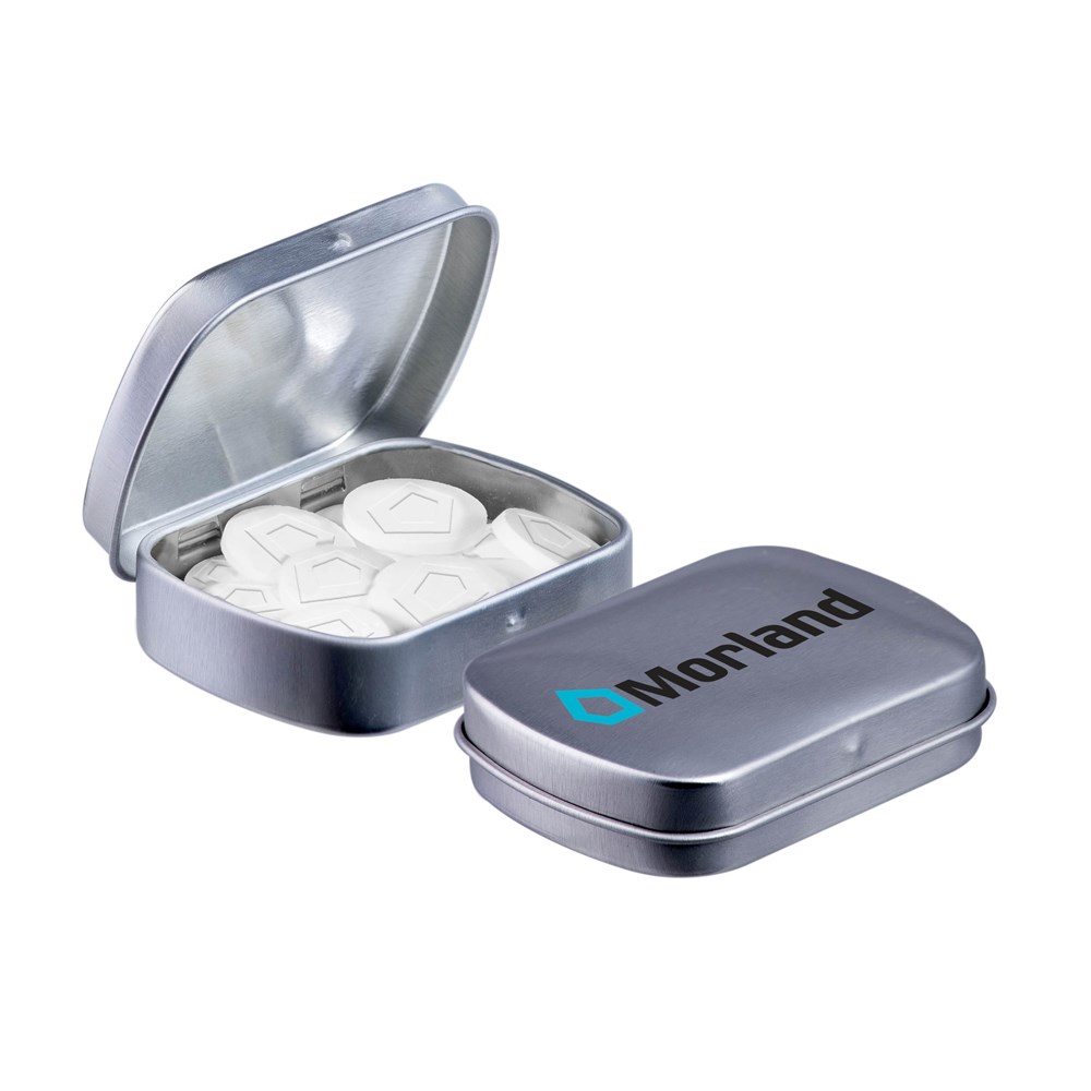 Benötigen Sie eine einzigartige Pfefferminze in Ihrer eigenem Form oder mit Ihrem Logo? Dann bestellen Sie unsere Silberne Minischarnierdose mit Pfefferminze mit Logo / Form und zeichnen Sie sich durch ein einzigartiges Werbegeschenk aus. Die Dose ist mit einem Siegel und einem ZutatenAufkleber versehen und in verschiedenen Farben erhältlich