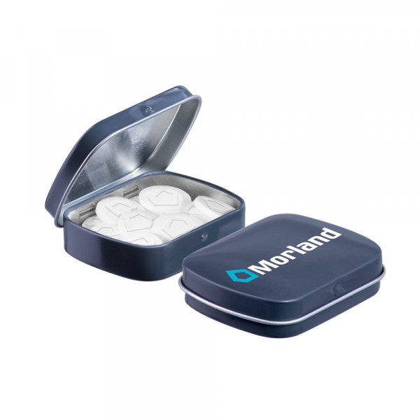 Benötigen Sie eine einzigartige Pfefferminze in Ihrer eigenem Form oder mit Ihrem Logo? Dann bestellen Sie unsere dunkelgraue Minischarnierdose mit Pfefferminze mit Logo / Form und zeichnen Sie sich durch ein einzigartiges Werbegeschenk aus. Die Dose ist mit einem Siegel und einem ZutatenAufkleber versehen und in verschiedenen Farben erhältlich