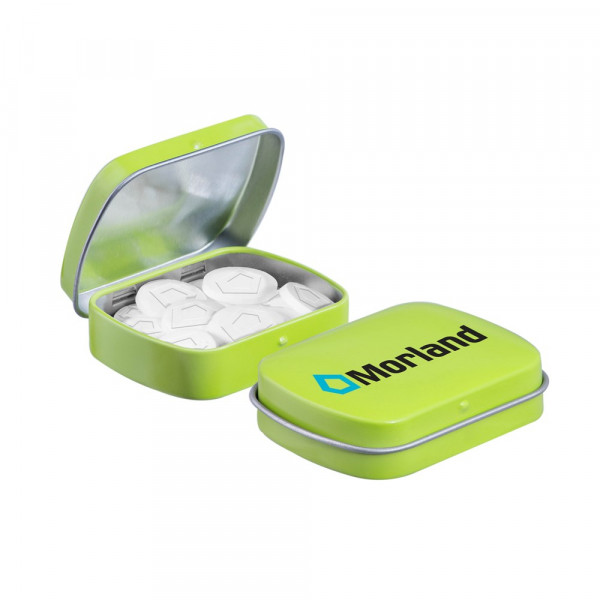 Benötigen Sie eine einzigartige Pfefferminze in Ihrer eigenem Form oder mit Ihrem Logo? Dann bestellen Sie unsere lime Minischarnierdose mit Pfefferminze mit Logo / Form und zeichnen Sie sich durch ein einzigartiges Werbegeschenk aus. Die Dose ist mit einem Siegel und einem ZutatenAufkleber versehen und in verschiedenen Farben erhältlich