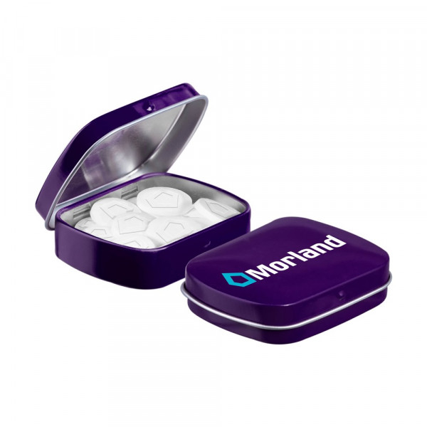 Benötigen Sie eine einzigartige Pfefferminze in Ihrer eigenem Form oder mit Ihrem Logo? Dann bestellen Sie unsere Violet Minischarnierdose mit Pfefferminze mit Logo / Form und zeichnen Sie sich durch ein einzigartiges Werbegeschenk aus. Die Dose ist mit einem Siegel und einem ZutatenAufkleber versehen und in verschiedenen Farben erhältlich