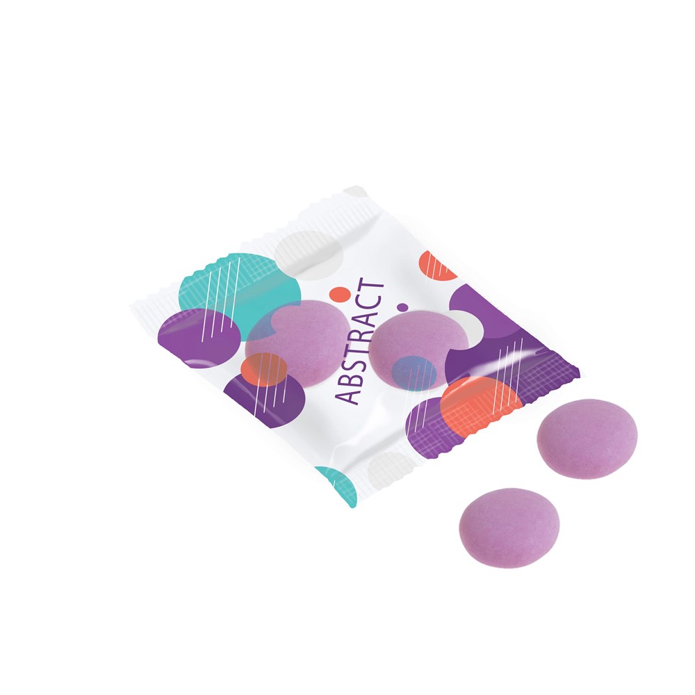 Filmtütchen gefüllt mit 2 Mentos Fruchtmix (Erdbeere, Zitrone, Orange) und all-over bedruckt. mehr