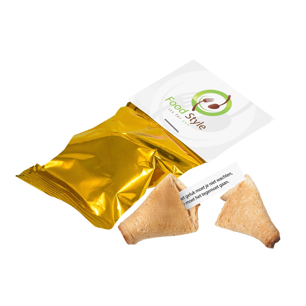 Nichts ist so einzigartig wie ein Glückskeks mit eigenem Tekst. Die Auswahl verschiedener Folienfarben und des Glückskekses wird mit einer farbigen Kopfkarte geliefert