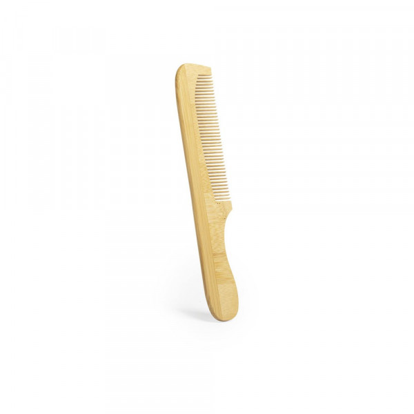 Kamm aus unserer Naturlinie aus poliertem Bambus, mit breiter Druckfläche auf dem Griff.