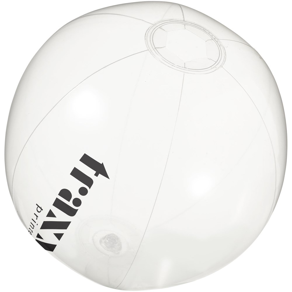 Einfarbiger, transparenter und aufblasbarer Wasserball. Im aufgeblasenen Zustand hat der Wasserball einen Durchmesser von ca. 25 cm, im unbefüllten Zustand sind es ca. 35 cm. Der erforderliche Warnhinweis ist um das Sicherheitsventil herum aufgedruckt. Große Werbeanbringungsfläche auf den Segmenten für maximale Sichtbarkeit des Logos. Entspricht EN-71, REACH und POP.