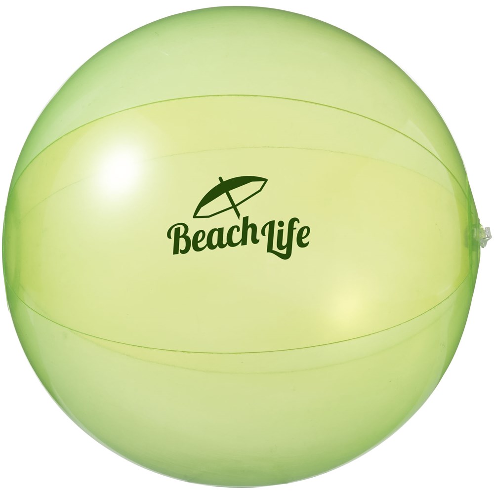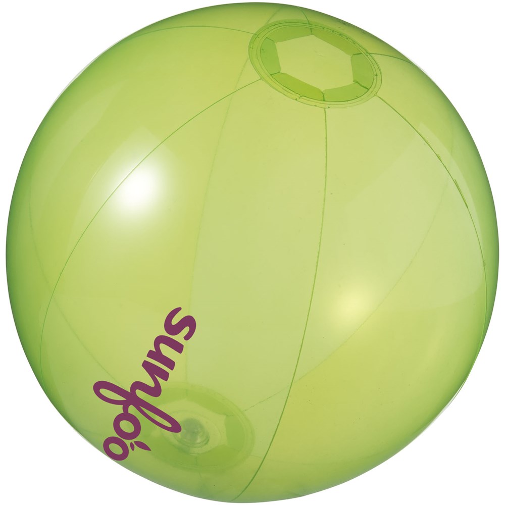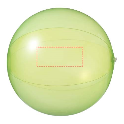 Einfarbiger, transparenter und aufblasbarer Wasserball. Im aufgeblasenen Zustand hat der Wasserball einen Durchmesser von ca. 25 cm, im unbefüllten Zustand sind es ca. 35 cm. Der erforderliche Warnhinweis ist um das Sicherheitsventil herum aufgedruckt. Große Werbeanbringungsfläche auf den Segmenten für maximale Sichtbarkeit des Logos. Entspricht EN-71, REACH und POP.