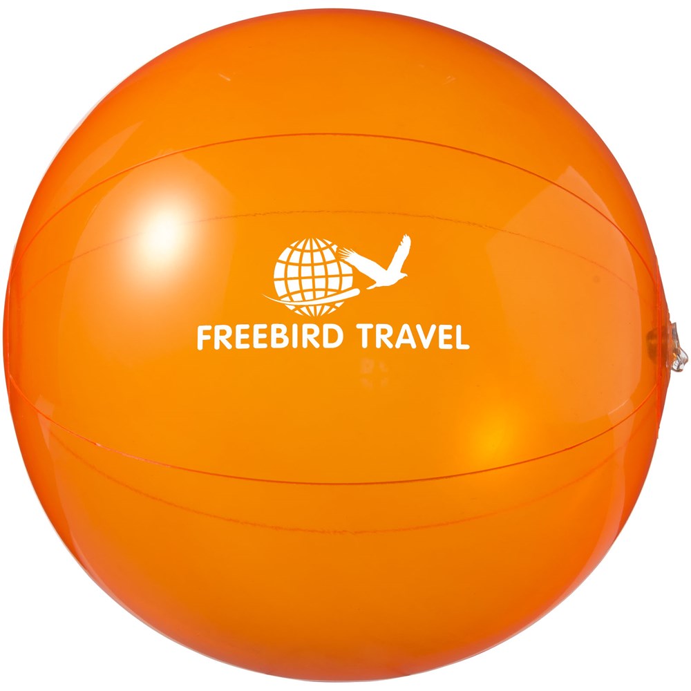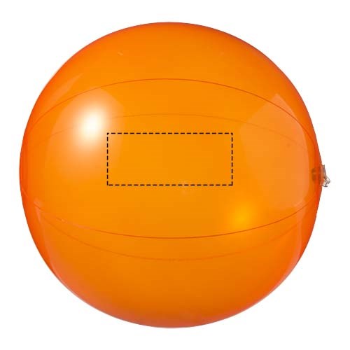 Einfarbiger, transparenter und aufblasbarer Wasserball. Im aufgeblasenen Zustand hat der Wasserball einen Durchmesser von ca. 25 cm, im unbefüllten Zustand sind es ca. 35 cm. Der erforderliche Warnhinweis ist um das Sicherheitsventil herum aufgedruckt. Große Werbeanbringungsfläche auf den Segmenten für maximale Sichtbarkeit des Logos. Entspricht EN-71, REACH und POP.