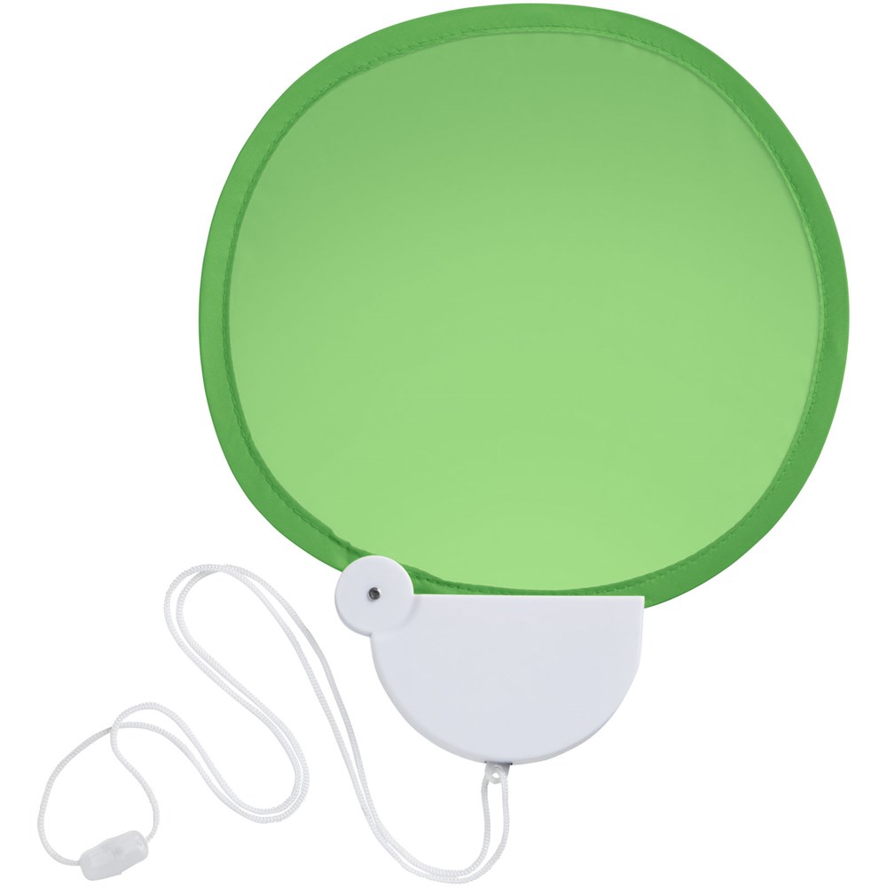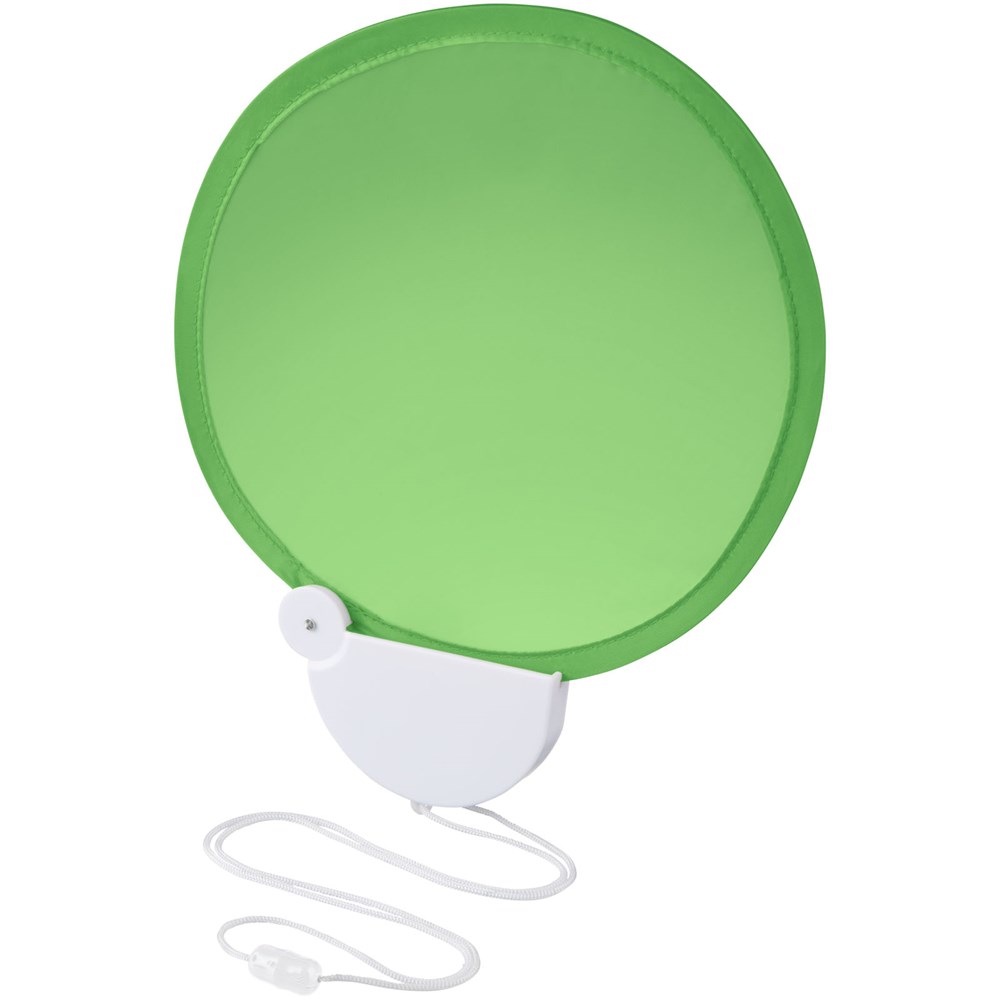 Flexibler Nylon Fächer, der in das Kunststoffgehäuse zusammengeklappt werden kann. Inkl. Umhängekordel.