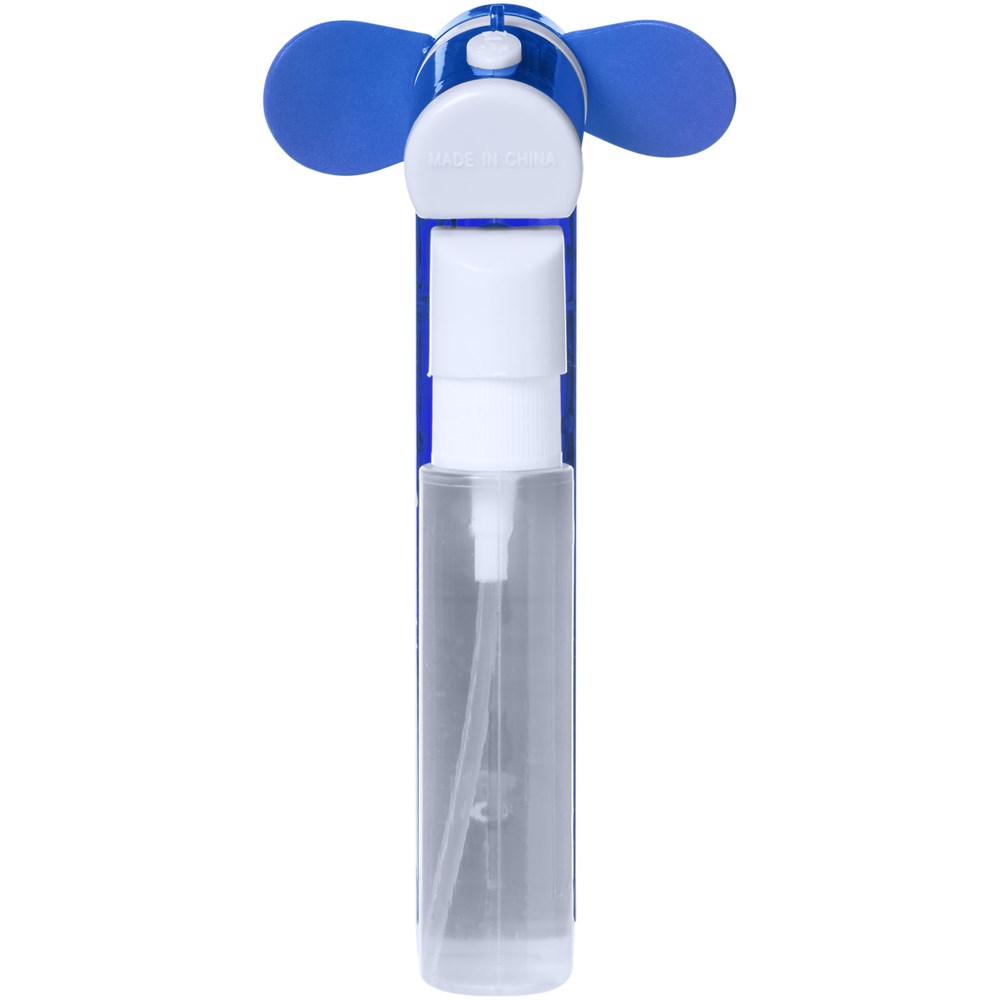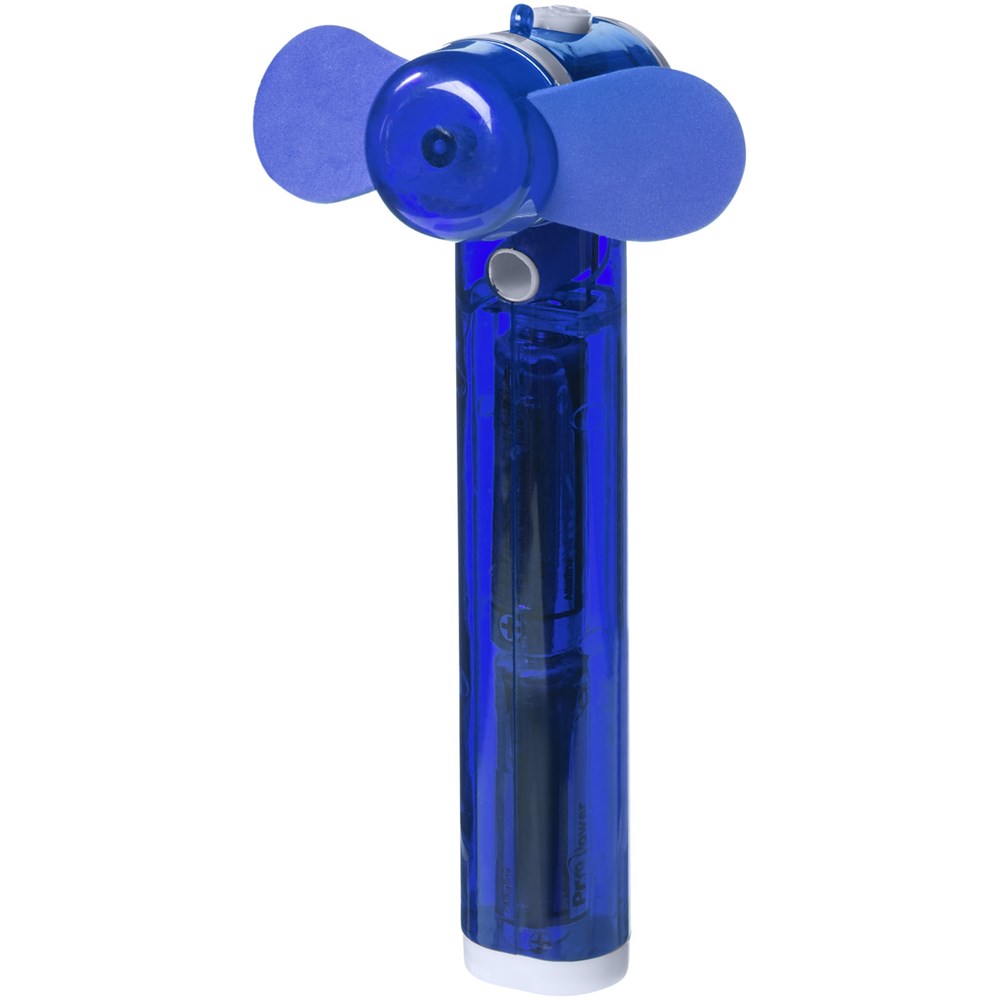 Taschenventilator mit kleinem Wasserbehälter und Spray für zusätzliche Erleichterung von der Hitze. 2x AA Batterien enthalten.