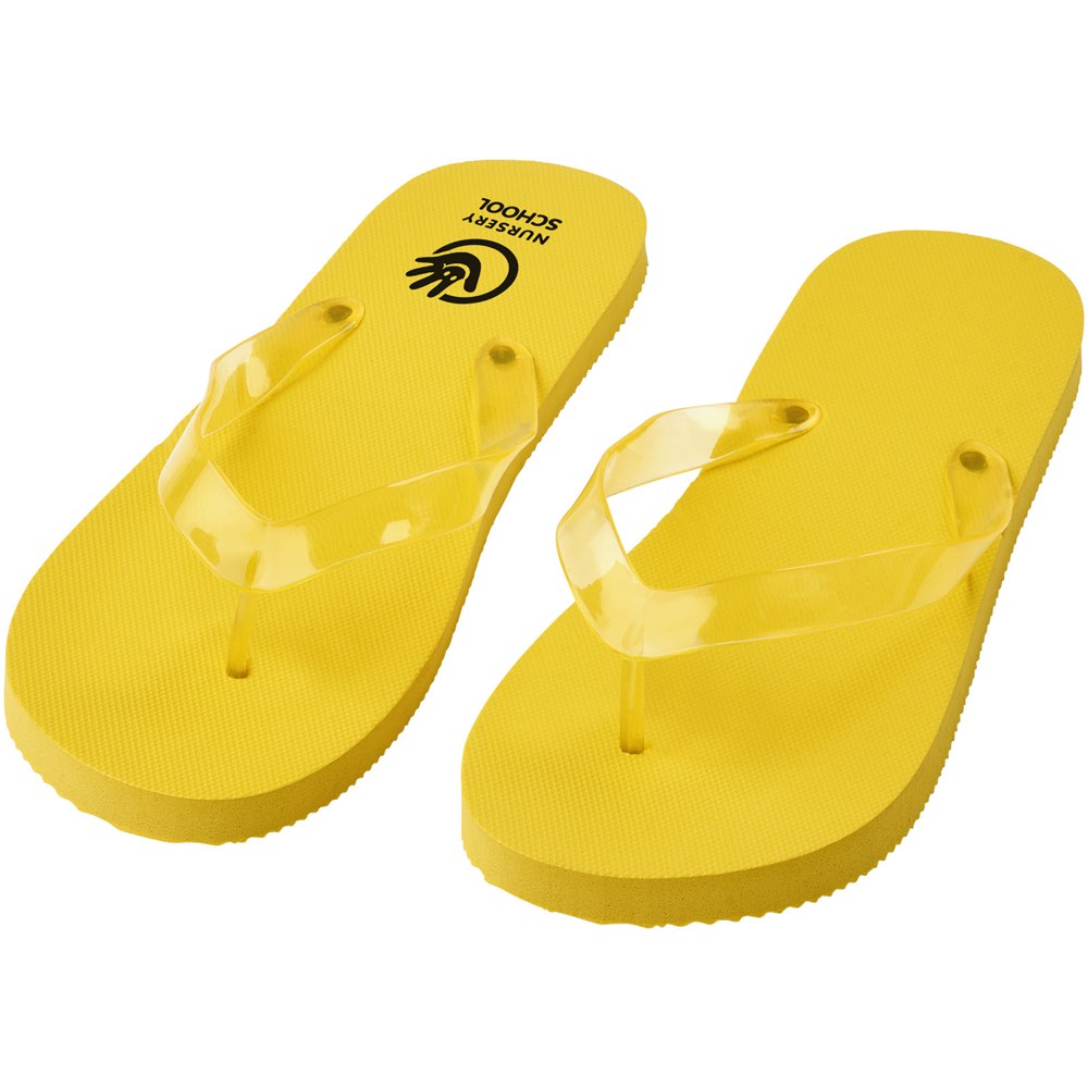 Set mit bequemen Strandschuhen in einer großen Farbauswahl mit Polyethylensohle und PVC-Band. Erhältlich in zwei verschiedenen Größen: M 36-38 und L: 42-44. Dies ist ein bewährtes Geschenk in der Sommersaison. Aufgrund der Art und Verwendung des Produkts ist jedes verwendete Logo einer Abnutzung ausgesetzt.