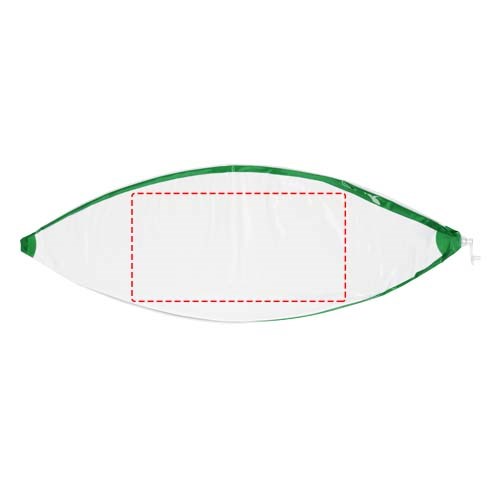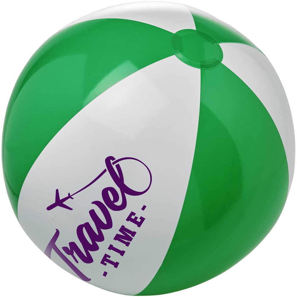 Zweifarbiger, aufblasbarer Wasserball. Im aufgeblasenen Zustand hat der Wasserball einen Durchmesser von ca. 40 cm, im unbefüllten Zustand sind es ca. 52 cm. Der erforderliche Warnhinweis ist um das Sicherheitsventil herum aufgedruckt. Große Werbeanbringungsfläche auf den Segmenten für maximale Sichtbarkeit des Logos. Entspricht EN-71, REACH und POP.